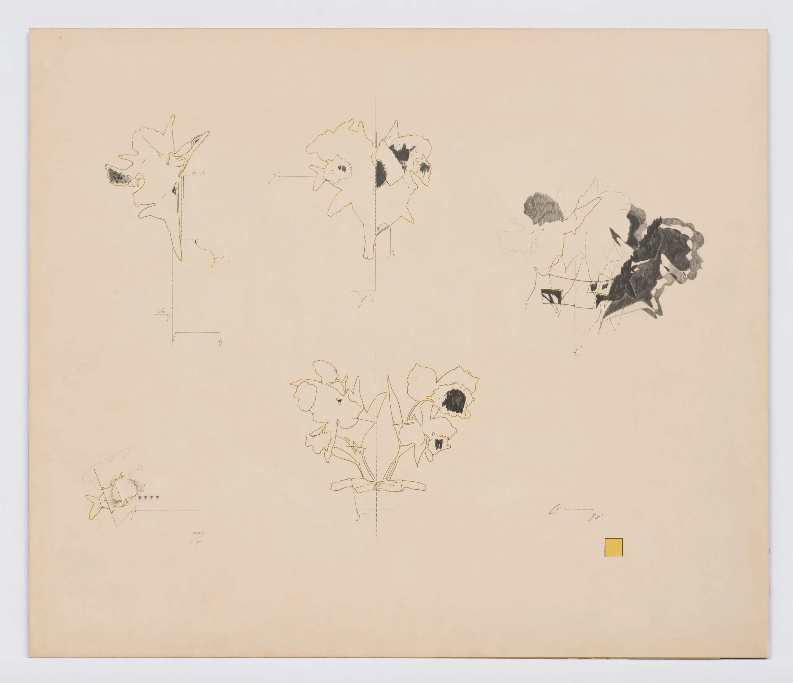 - Graphite, yellow carbon transfer, and colored pencil on paper mounted to chip board