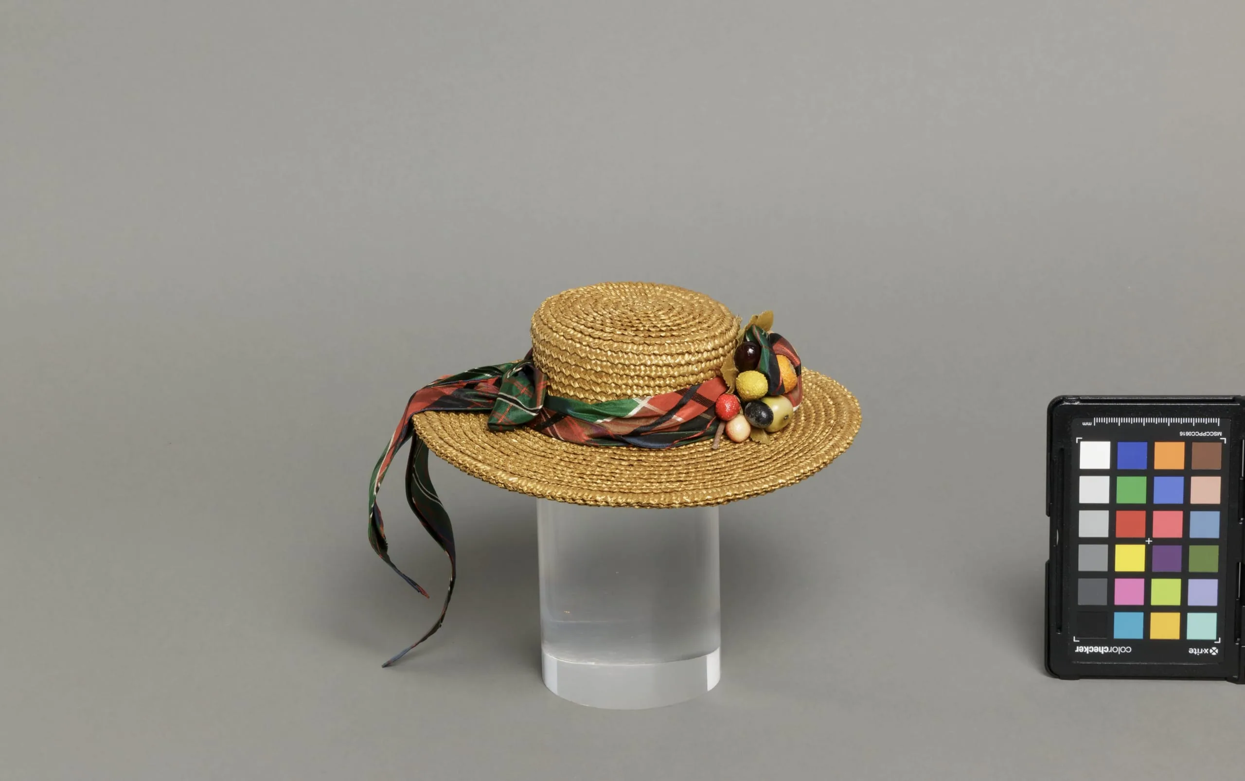 - Straw, plaited, with silk plain weave and papier-mâchè