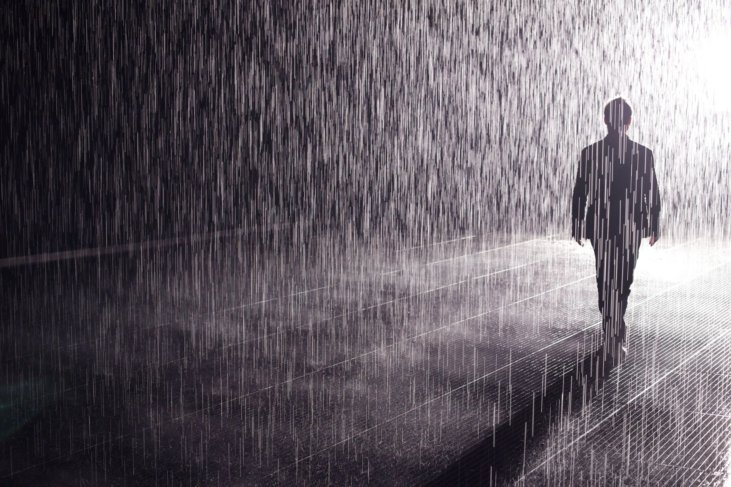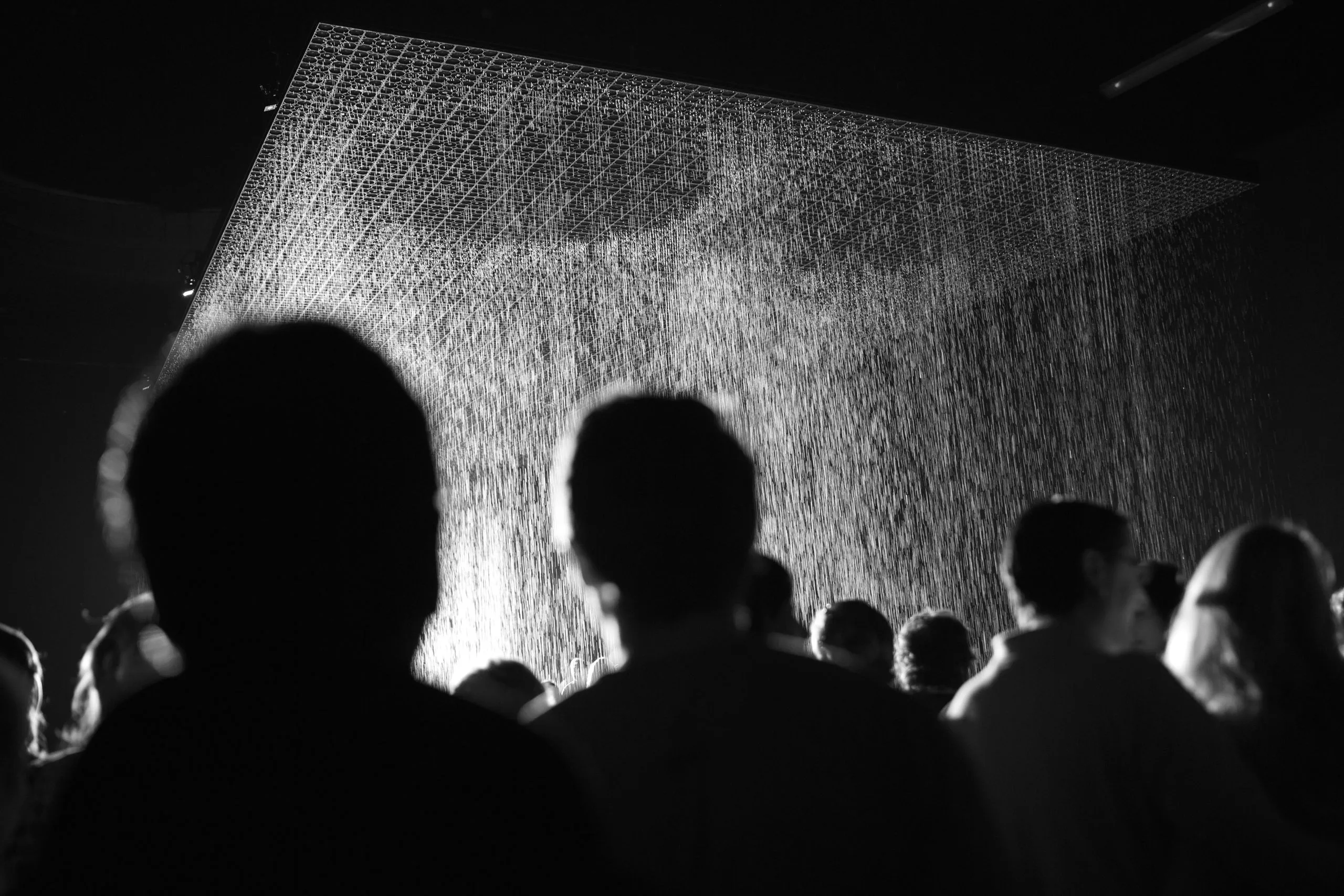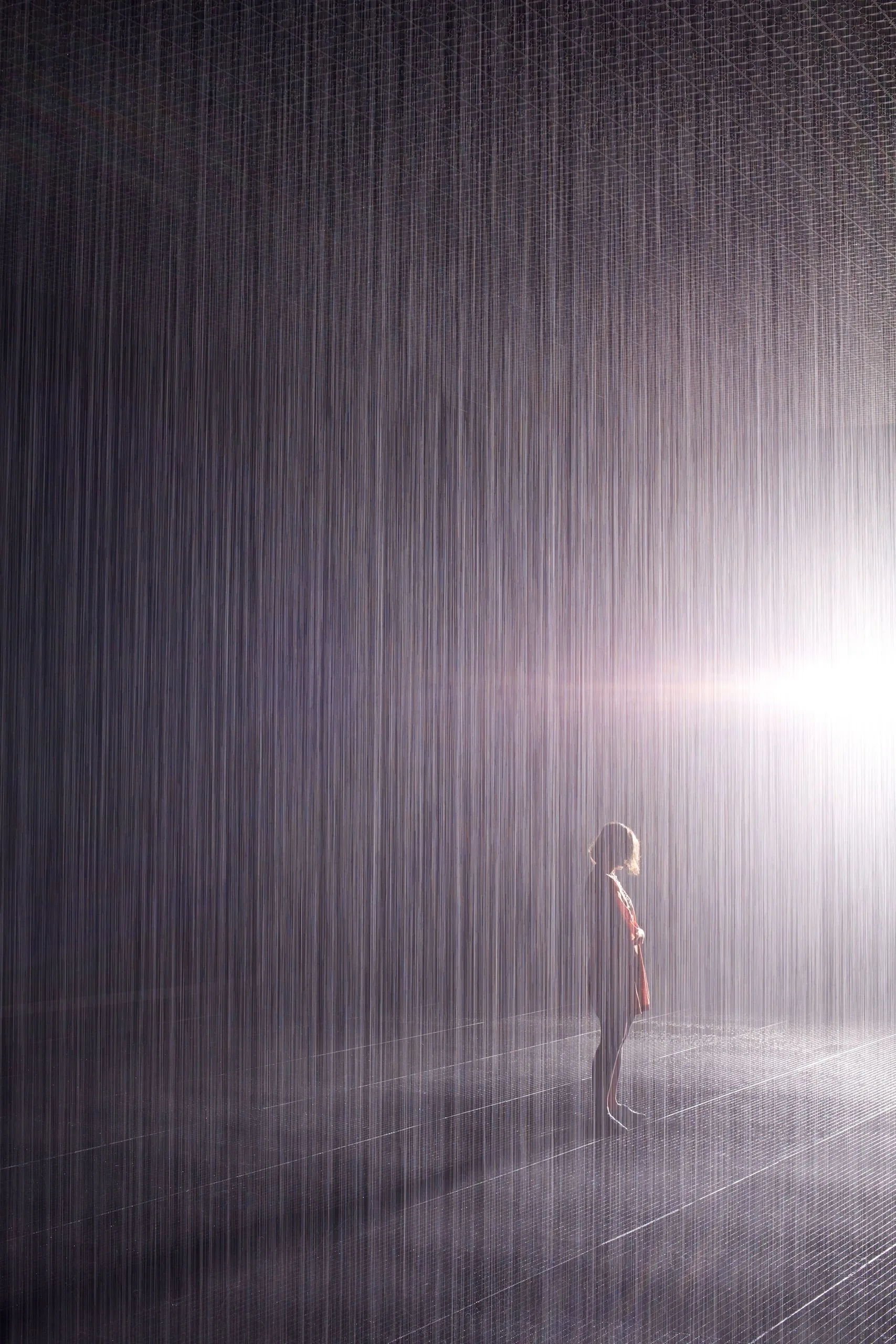 - Water, injection-molded tiles, solenoid valves, pressure regulators, custom software, 3D-tracking cameras, steel beams, water management system, grated floor