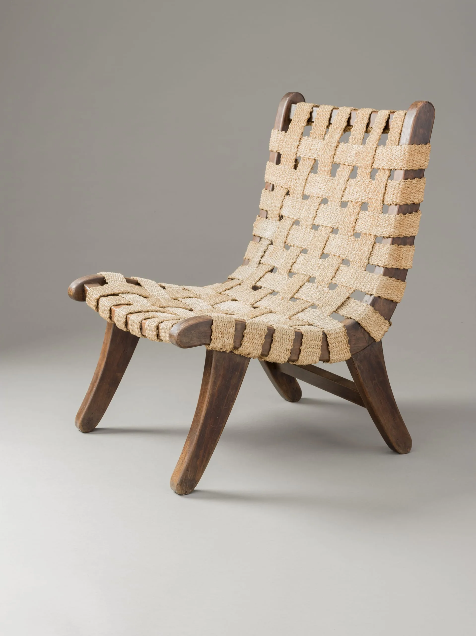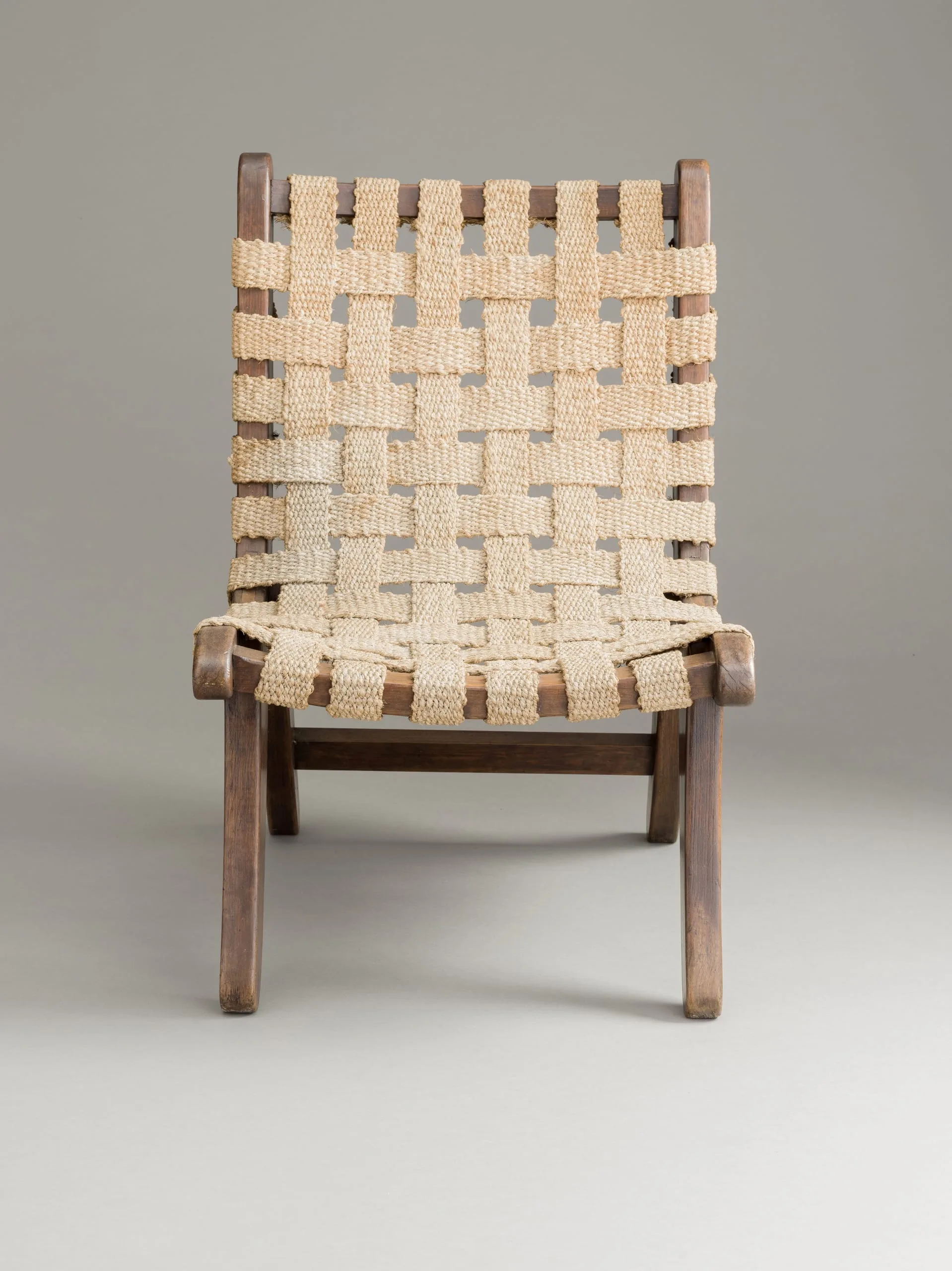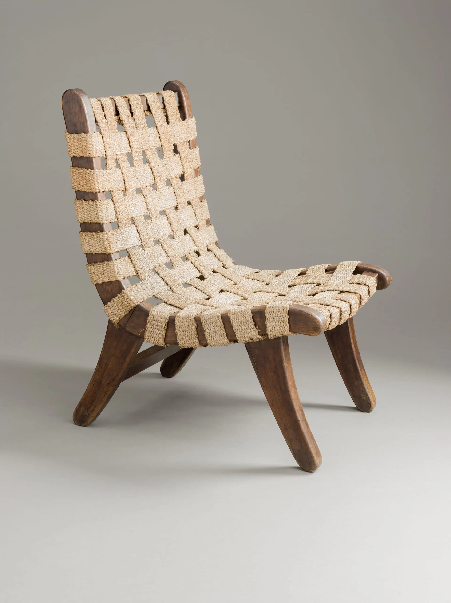 The San Miguel or San Miguelito side chair is one of Michael Van Beuren’s most successful and representative designs. (Michael van Bueren was referred to as Don Miguel or Don Miguelito in Spanish, from where he took the name.) The chair is a modern interpretation of the traditional butaca, or butaque (commonly referred to as Campeche chair), which was popular in Mexico’s coastal areas since colonial times, including the Yucatan Peninsula and Veracruz. This particular iteration of the San Miguelito chair was likely produced from 1947 to 1960, the period when the bulk of Domus production was manufactured using the more inexpensive Mexican white pine wood (ayacahuite) combined with natural fibers such as woven agave fiber (ixtle) and palm.