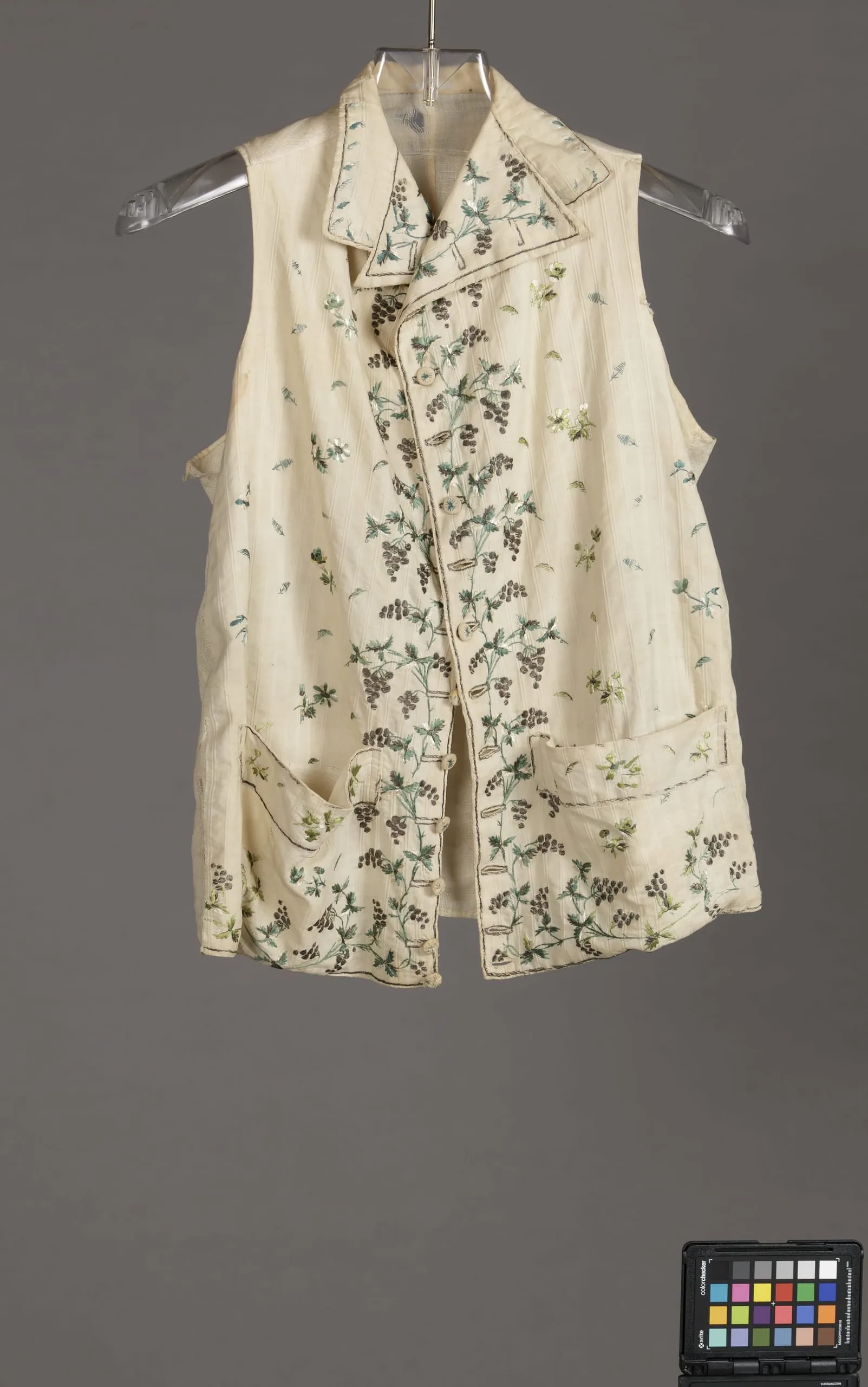 - Linen plain weave with supplementary-warp patterning, with silk- and metallic-thread embroidery
