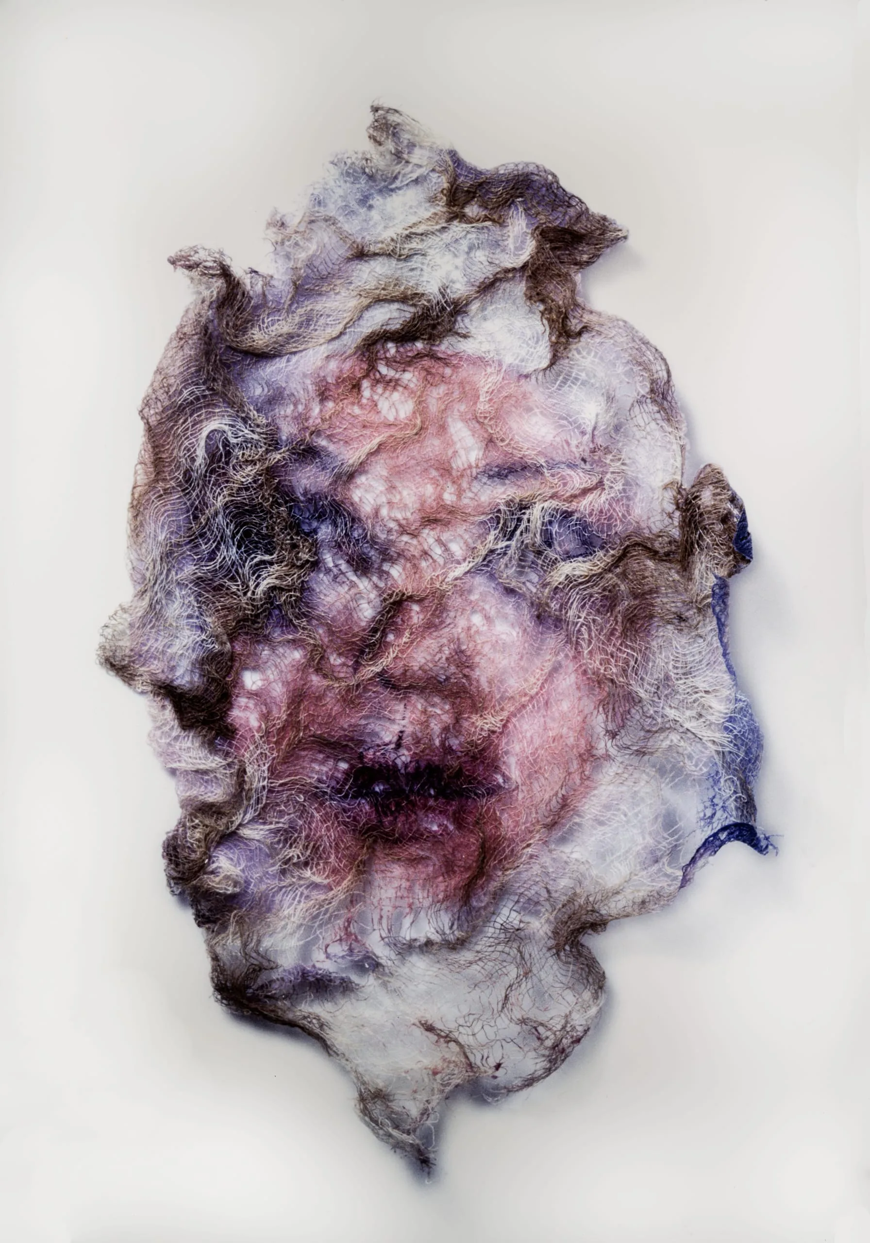 - Photo transferred to gauze imbued with blood, Plexiglas lightbox