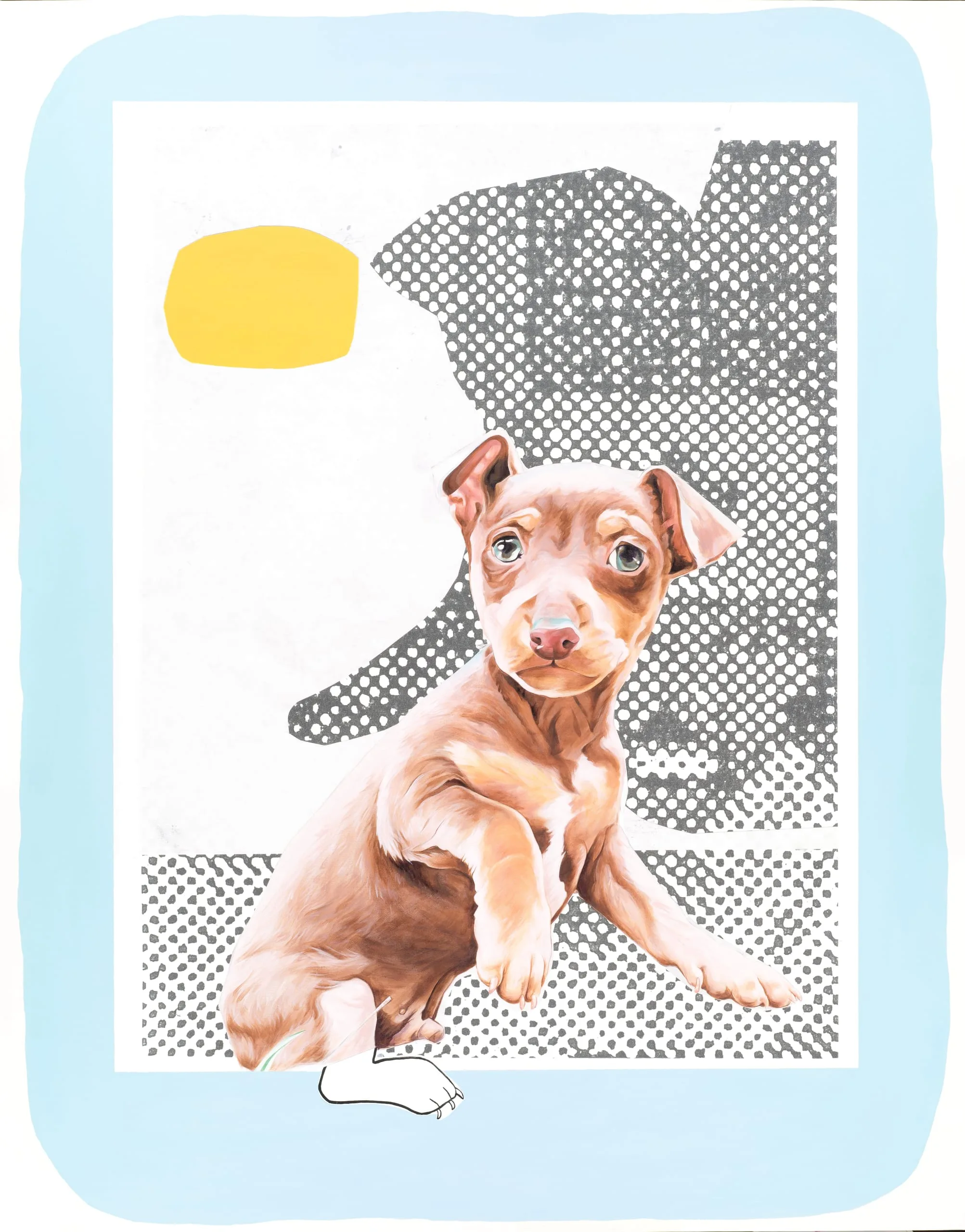 - Acrylic, ink, and paper on canvas
