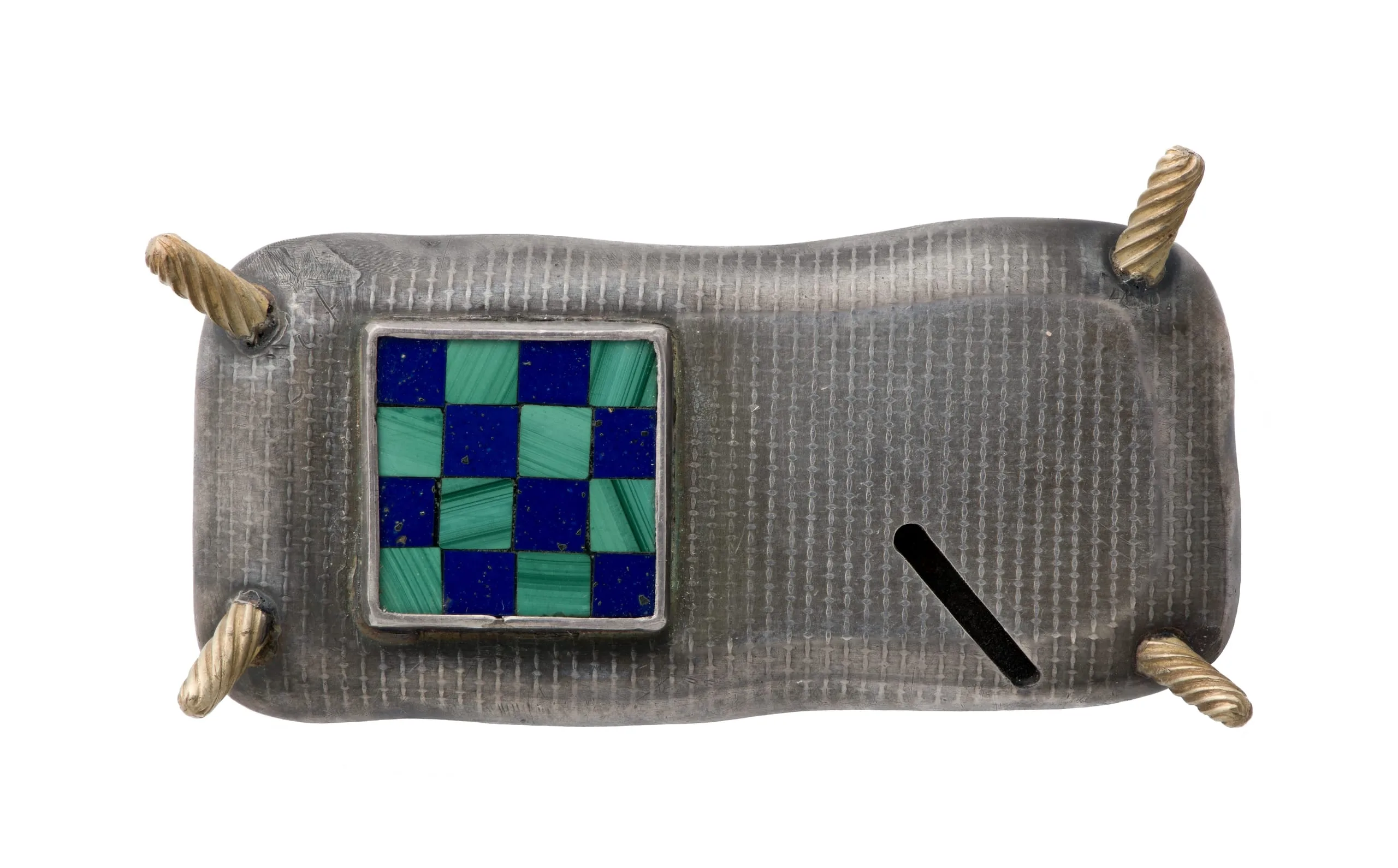- Silver, 18k gold, malachite, lapis