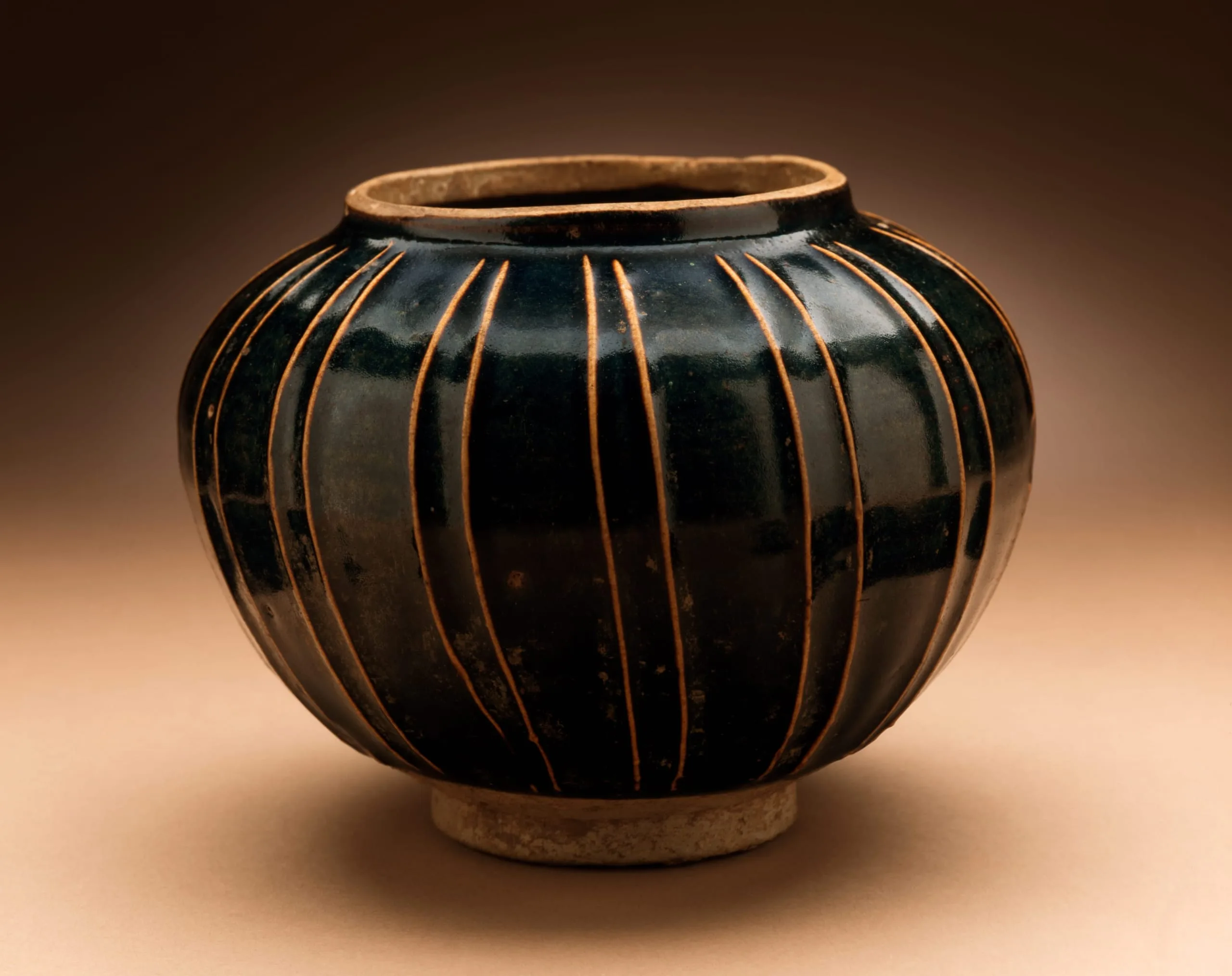 - Northern Black ware, wheel-thrown stoneware with slip-trailed ribs and black glaze