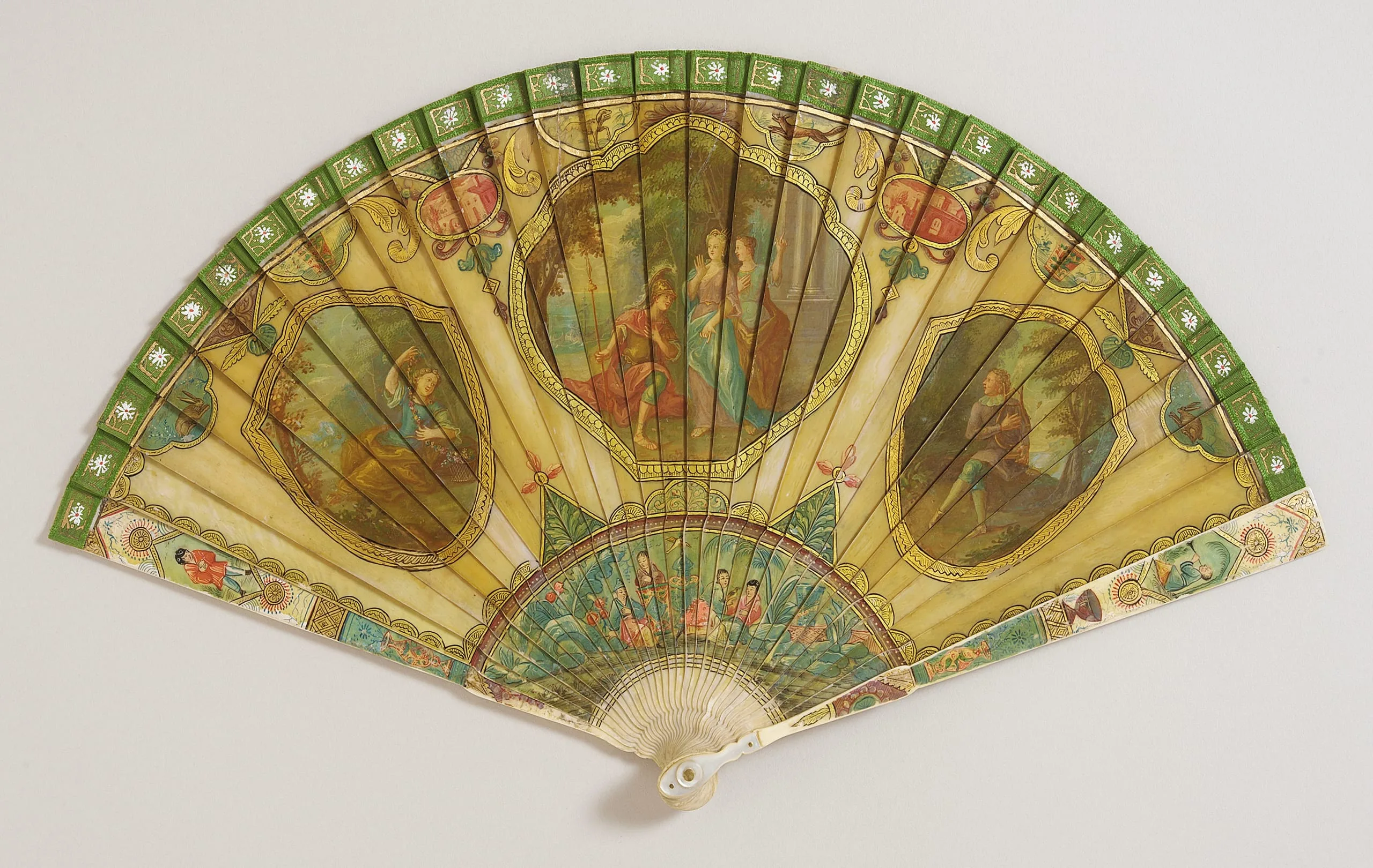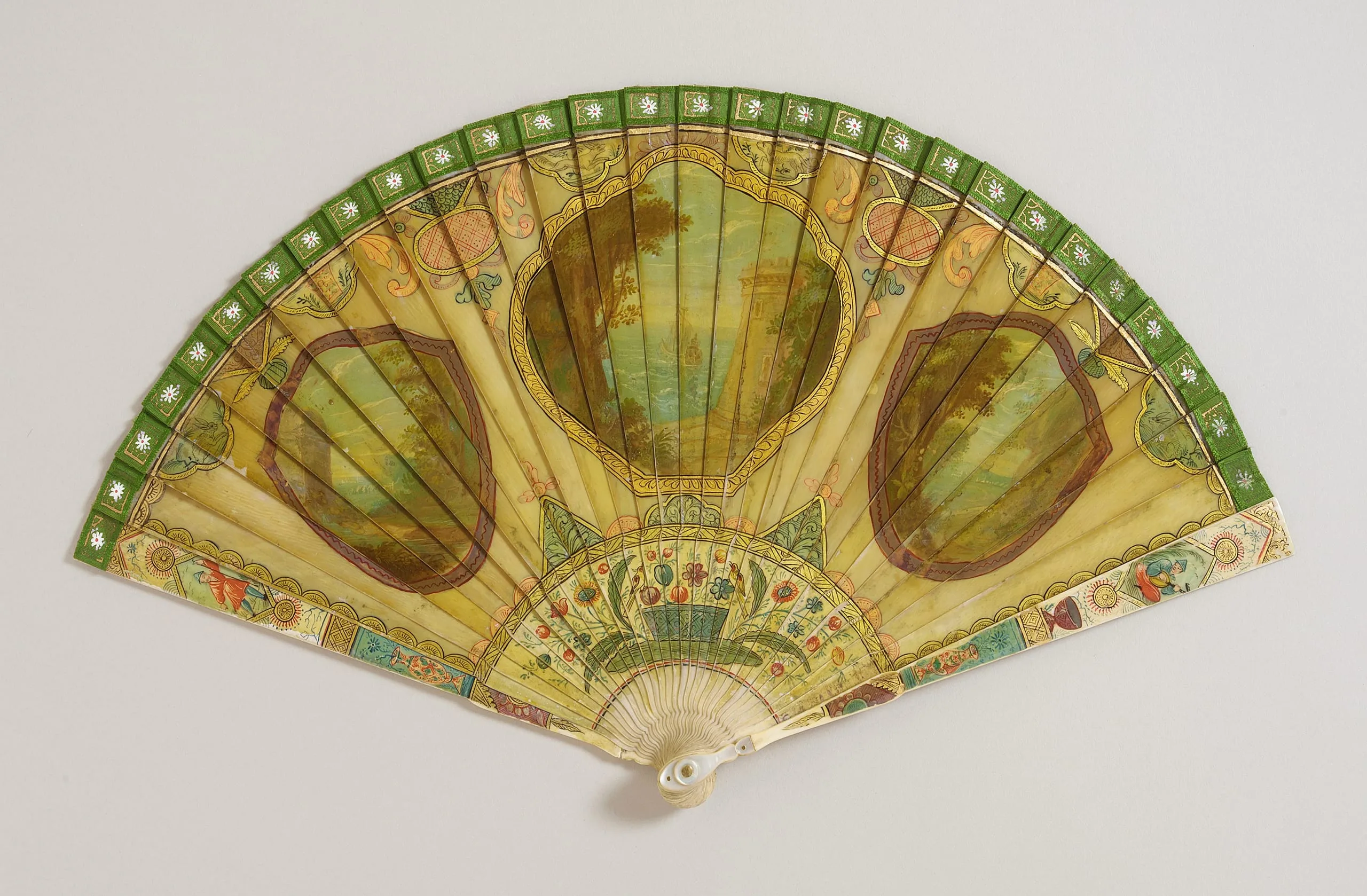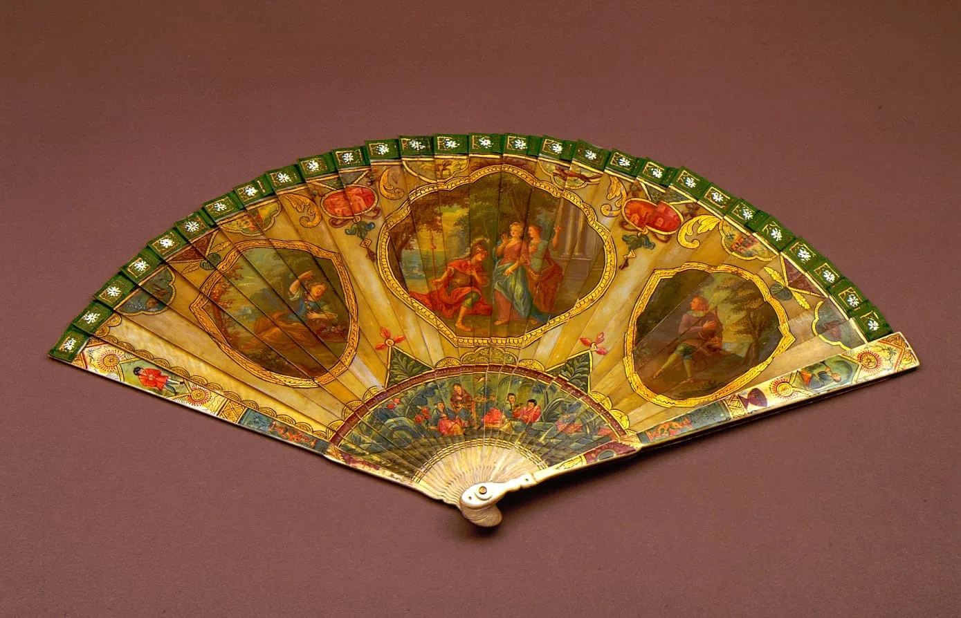 - Painted and varnished brisé fan with ivory and mother-of-pearl