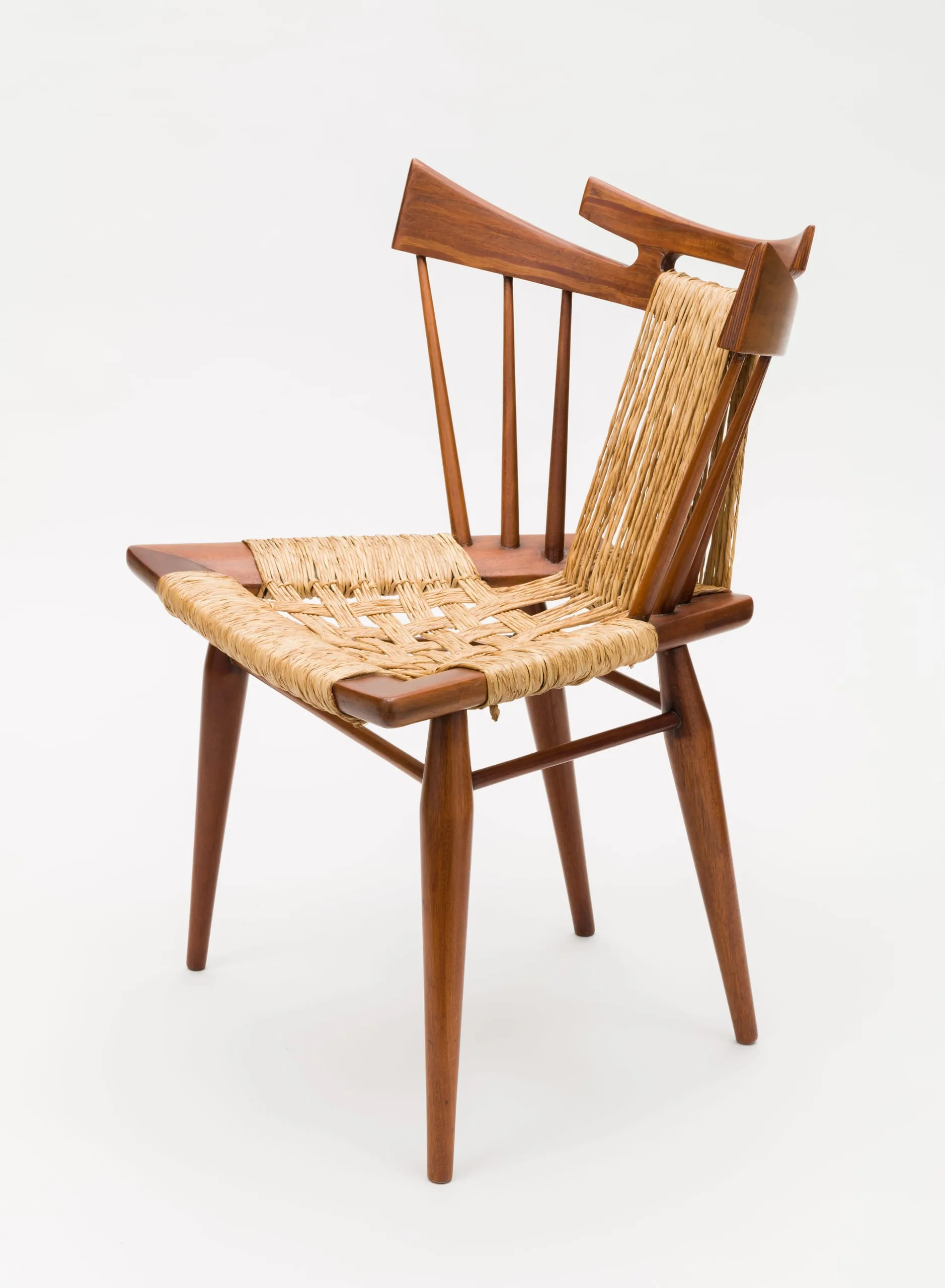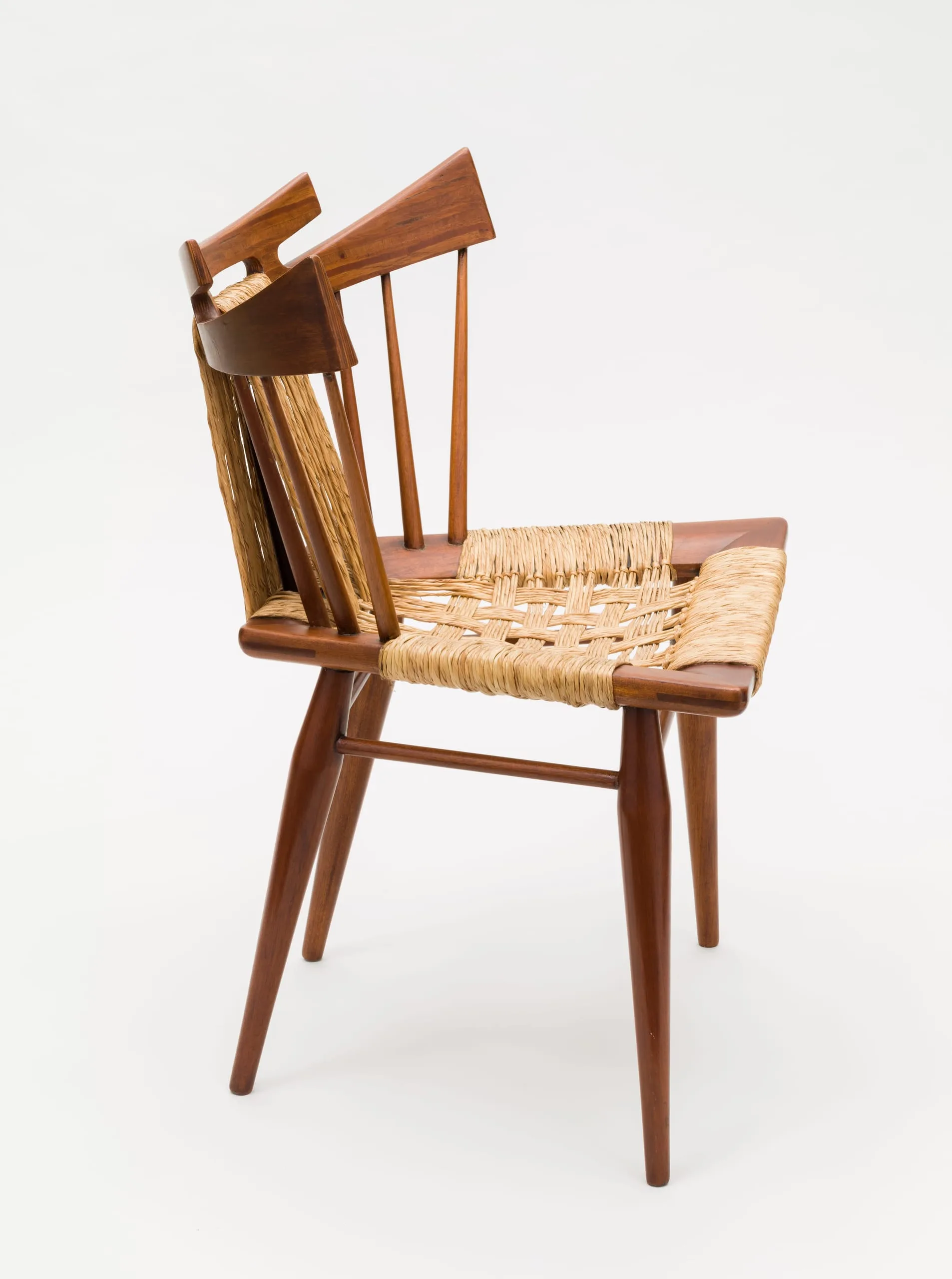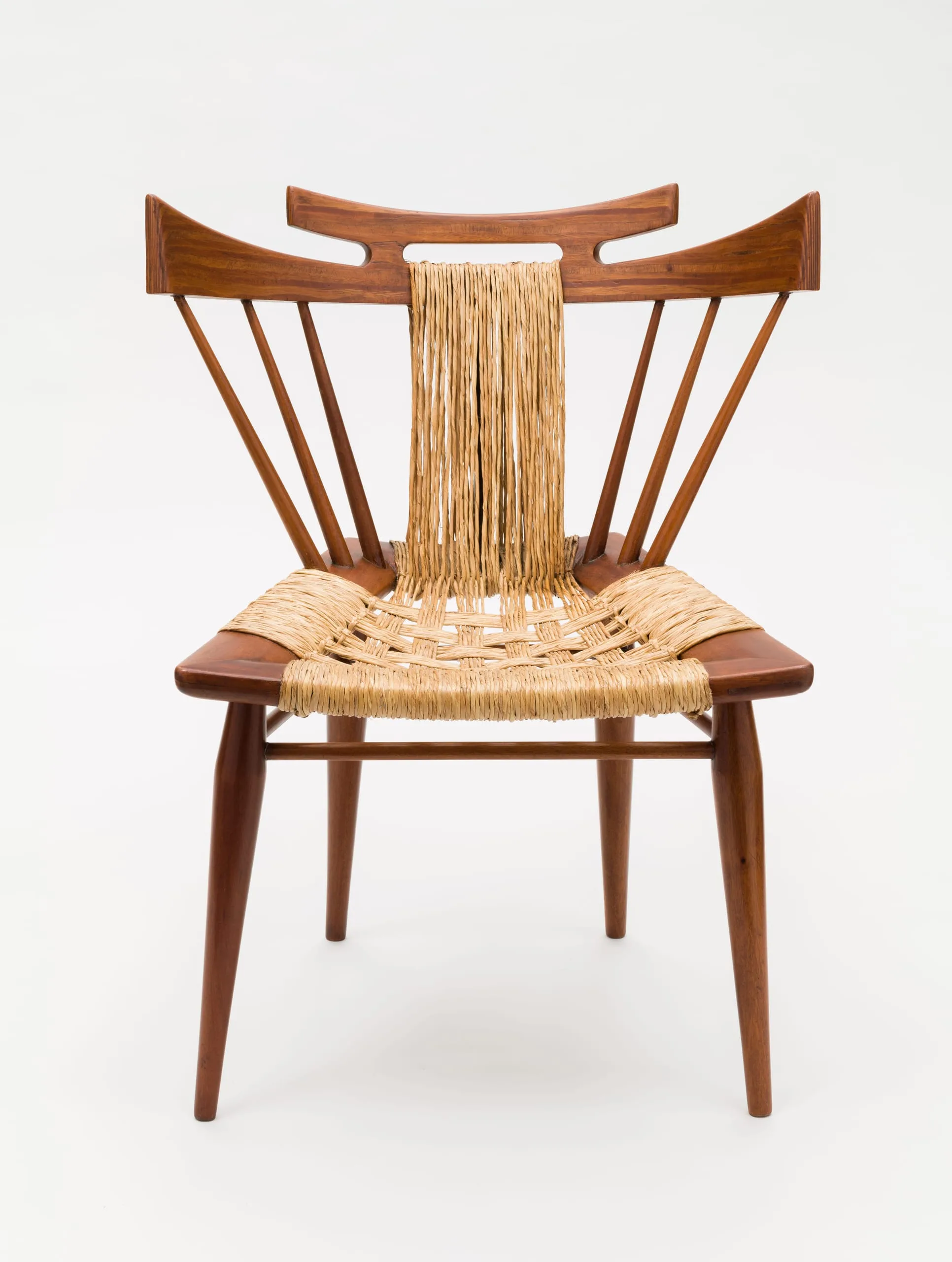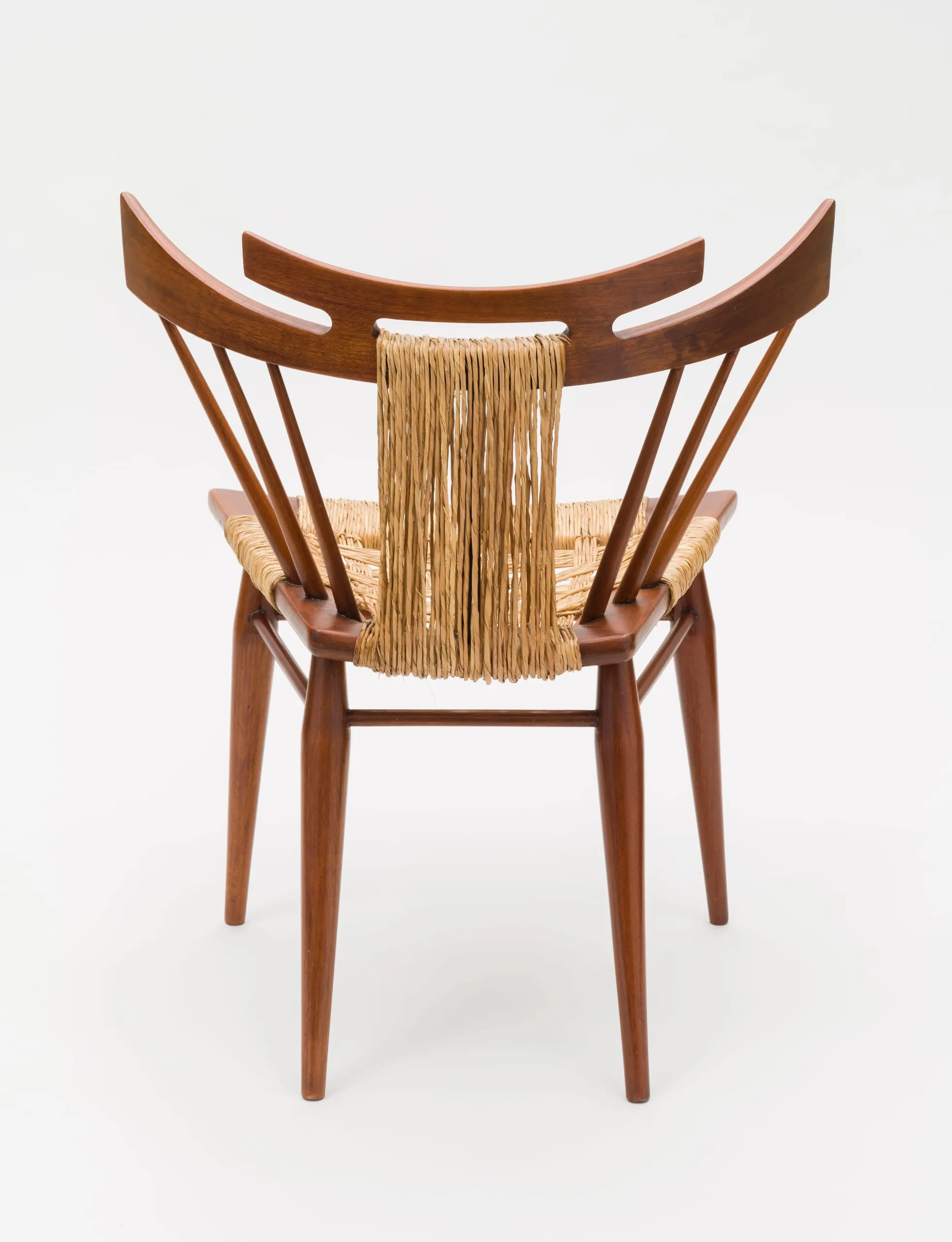 In 1952 Industria Mueblera, a major Mexico City furniture company, produced the Continental America line by New York-based designer Edmond J. Spence. Taking his inspiration from both ancient American and Spanish Colonial art and furnishings, Spence used traditional Mexican materials and techniques and applied them to pared-down modernist forms. This chair, which combines molded mahogany plywood with handcrafted solid mahogany and woven palm, exemplifies the collection’s blend of modern and traditional elements.