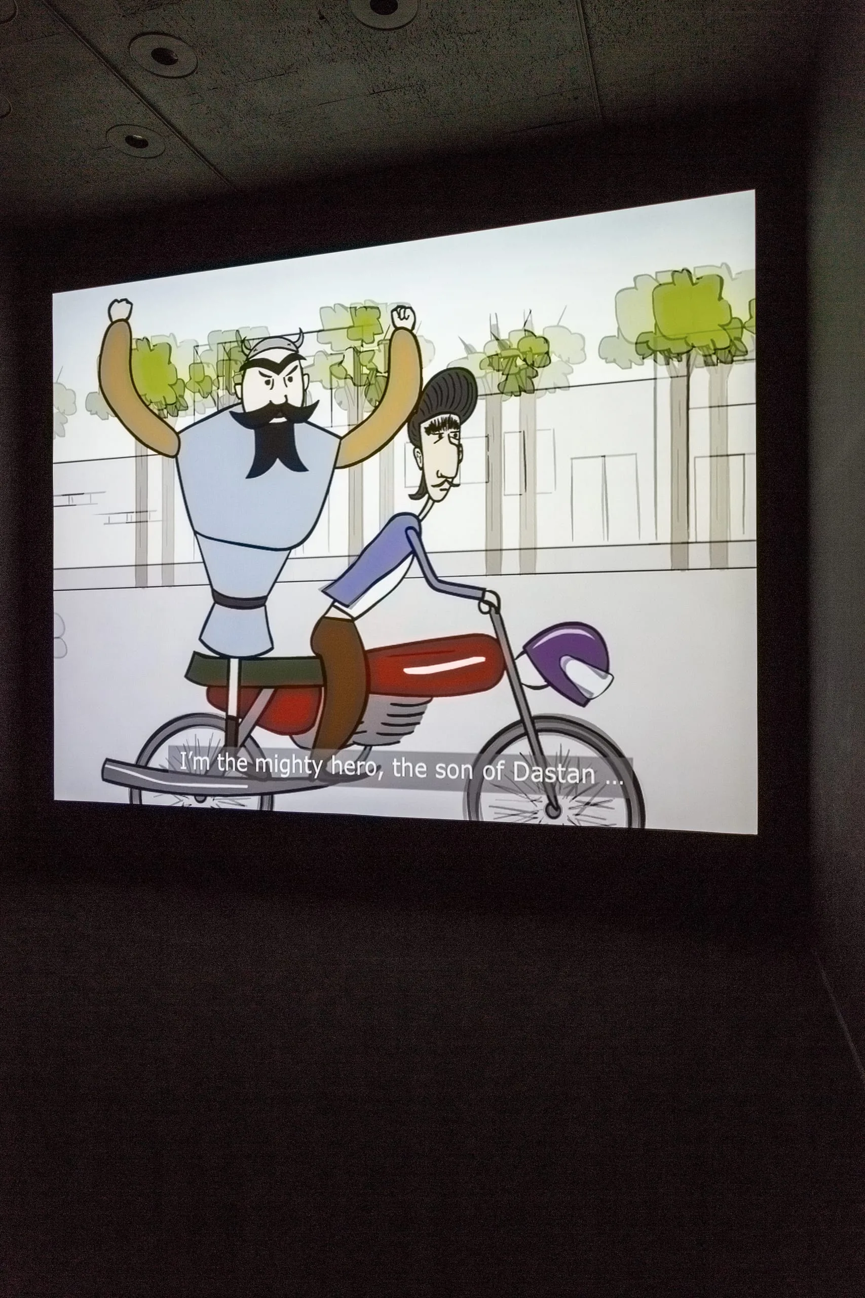 As with other literary masterpieces, the Iranian national epic, the Shahnama (Book of Kings), has an appeal and an elasticity that have allowed successive generations to discover or invent new meanings. Inspired by the text, many contemporary Iranian artists elect to bypass its universalities in favor of more specific social commentary. In this animated video, Rostam, the great hero of the Shahnama, is transplanted to the twenty-first century, where he struggles with the comically absurd and all-too-realistic trials of everyday life in Iran: inflation, drug addiction, extreme plastic surgery, and the harsh realities of economic sanctions.
