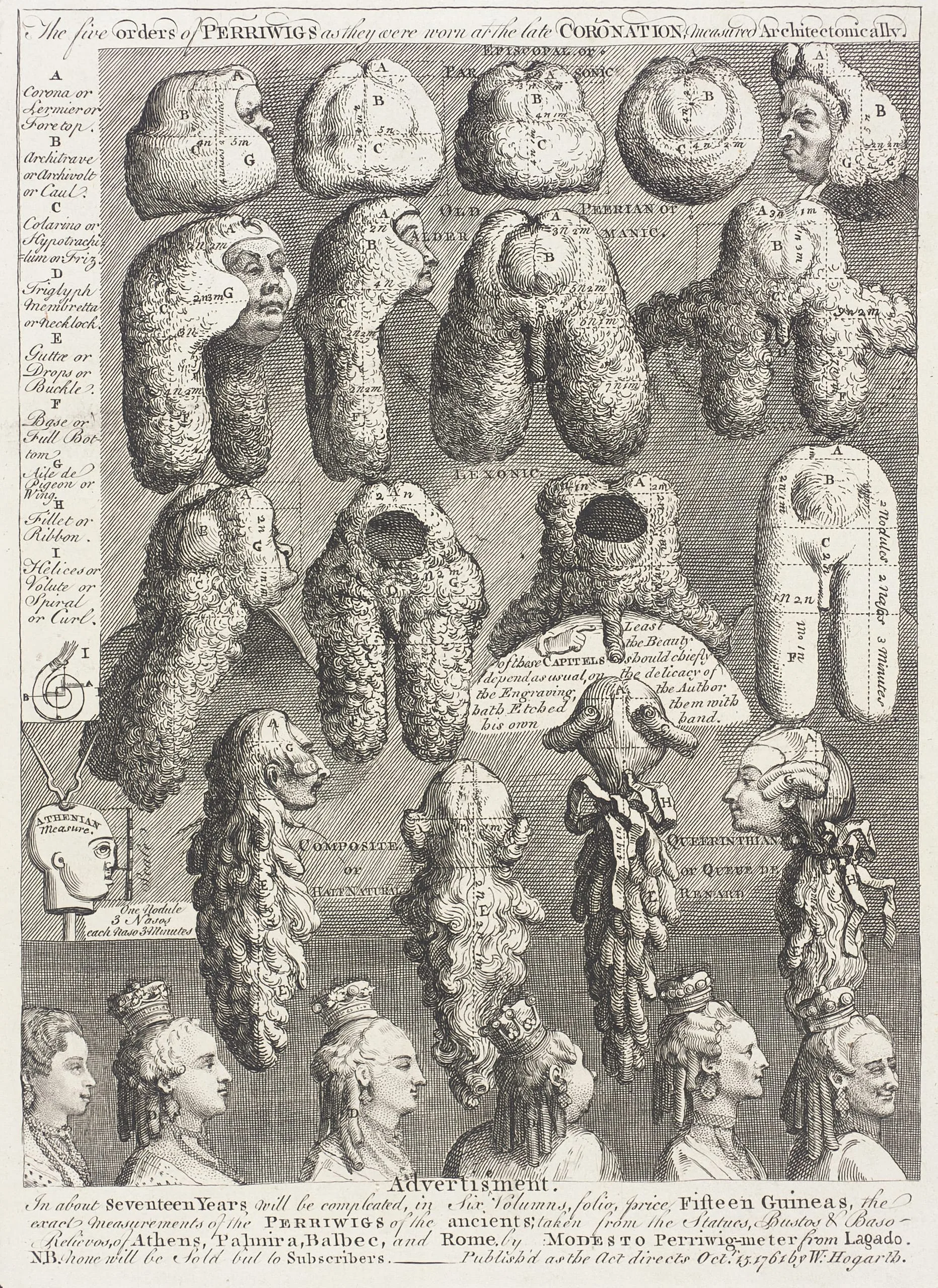 The Five Orders of Perriwigs as They Were Worn at the Late Coronation, Measured Architectonically