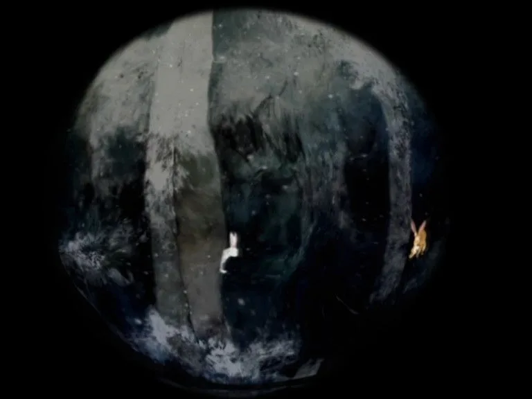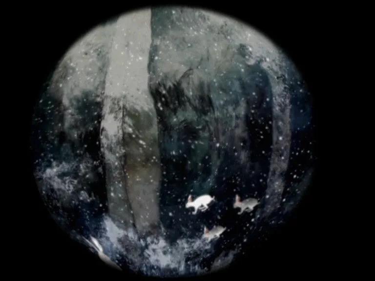 - Projected animation and sound, in a steel well containing the projector and ventilation system, Plexiglas screen, water. Sound: Chopin Nocturne Op. 9 No. 1