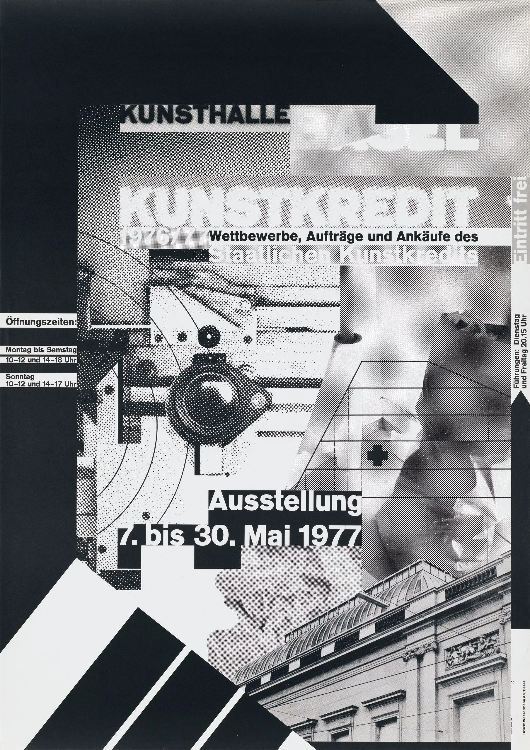 Graphic designer and typographer Wolfgang Weingart challenged the prevailing orthodoxy of Swiss International Style design, infusing his work with expressive typography and defying the strict grids and hierarchies of his predecessors. Trained as a typesetter in his native Germany, Weingart developed a deep understanding of the materials and craft of printing, allowing him to experiment with composition and letter spacing directly on the press. He would later apply this methodology to new technologies such as phototypesetting, working out every detail for the printer in order to create a distinctive, nuanced aesthetic. He developed a complex technique of hand-layering screens that emphasized the building blocks of offset imagery – lithographic half-tone dot and overlapping moiré patterns – as graphic elements, rather than creating the illusion of a perfect, uniform surface. In posters such as this one, Weingart complicated the picture plane by overlapping the pattern and text, creating a sense of depth throughout the composition.Though Weingart’s distorted texts and dense collages stirred controversy in the design world, he maintained the respect of his modernist colleagues at the Schule für Gestaltung Basel in Switzerland. His experiments are considered an important precursor to digital design.