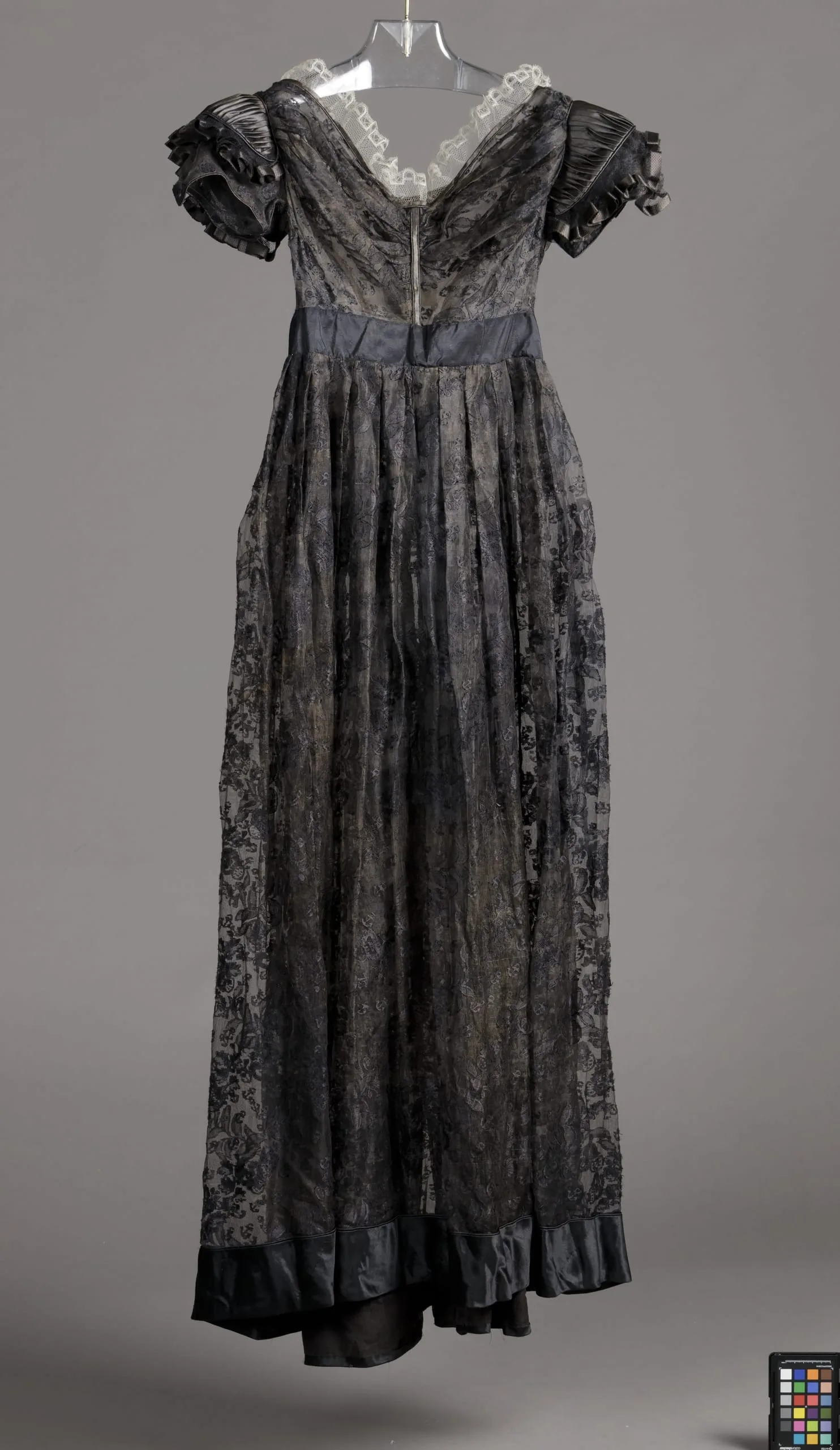 - Silk gauze with silk supplementary-weft patterning, silk satin, silk tulle, and linen lace