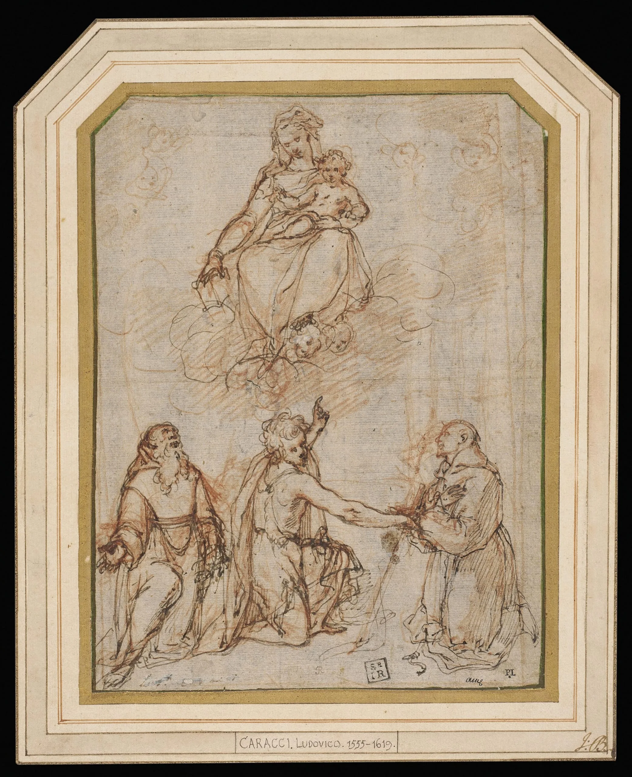 - Pen and brown ink over red chalk on faded blue paper