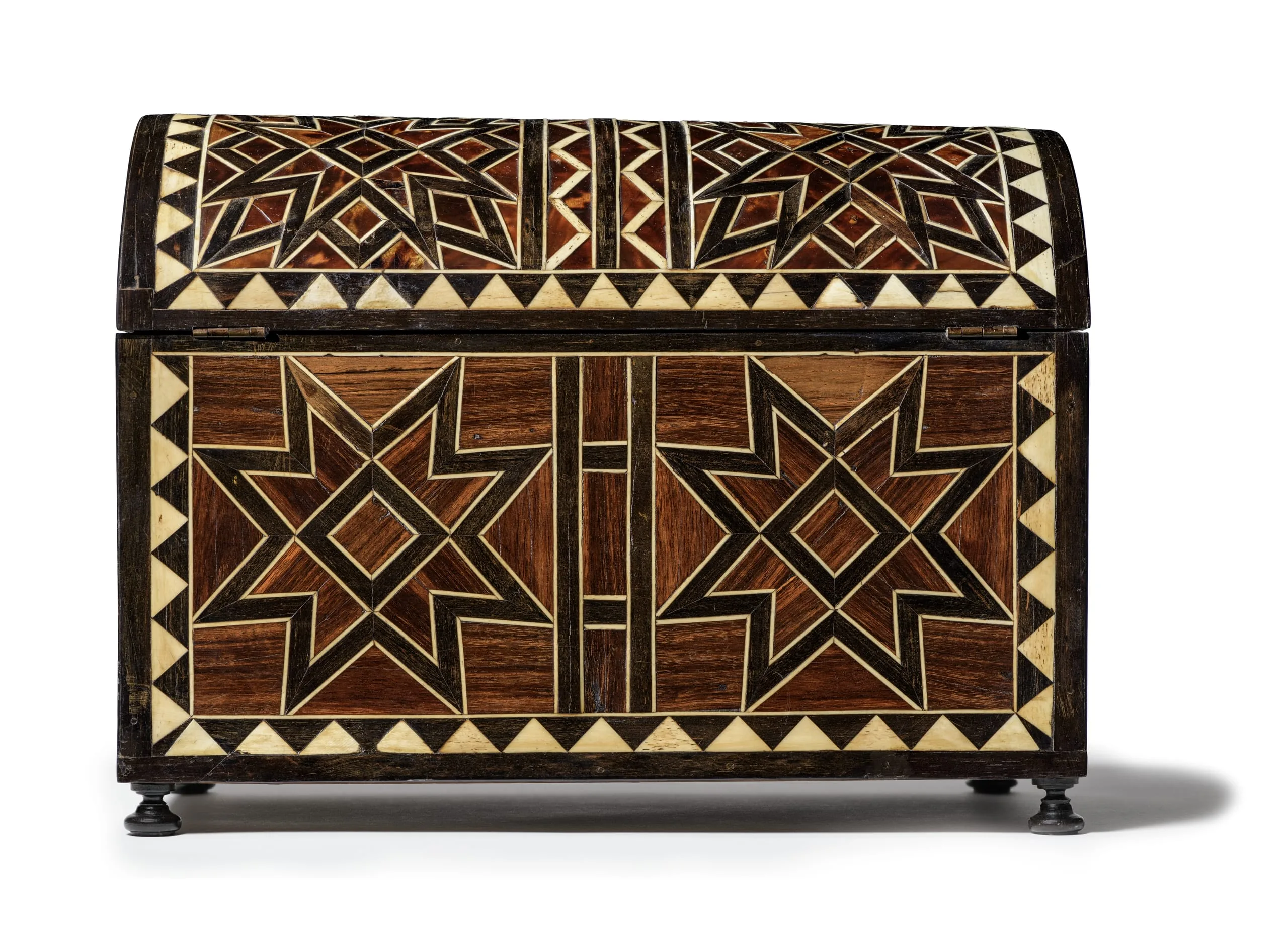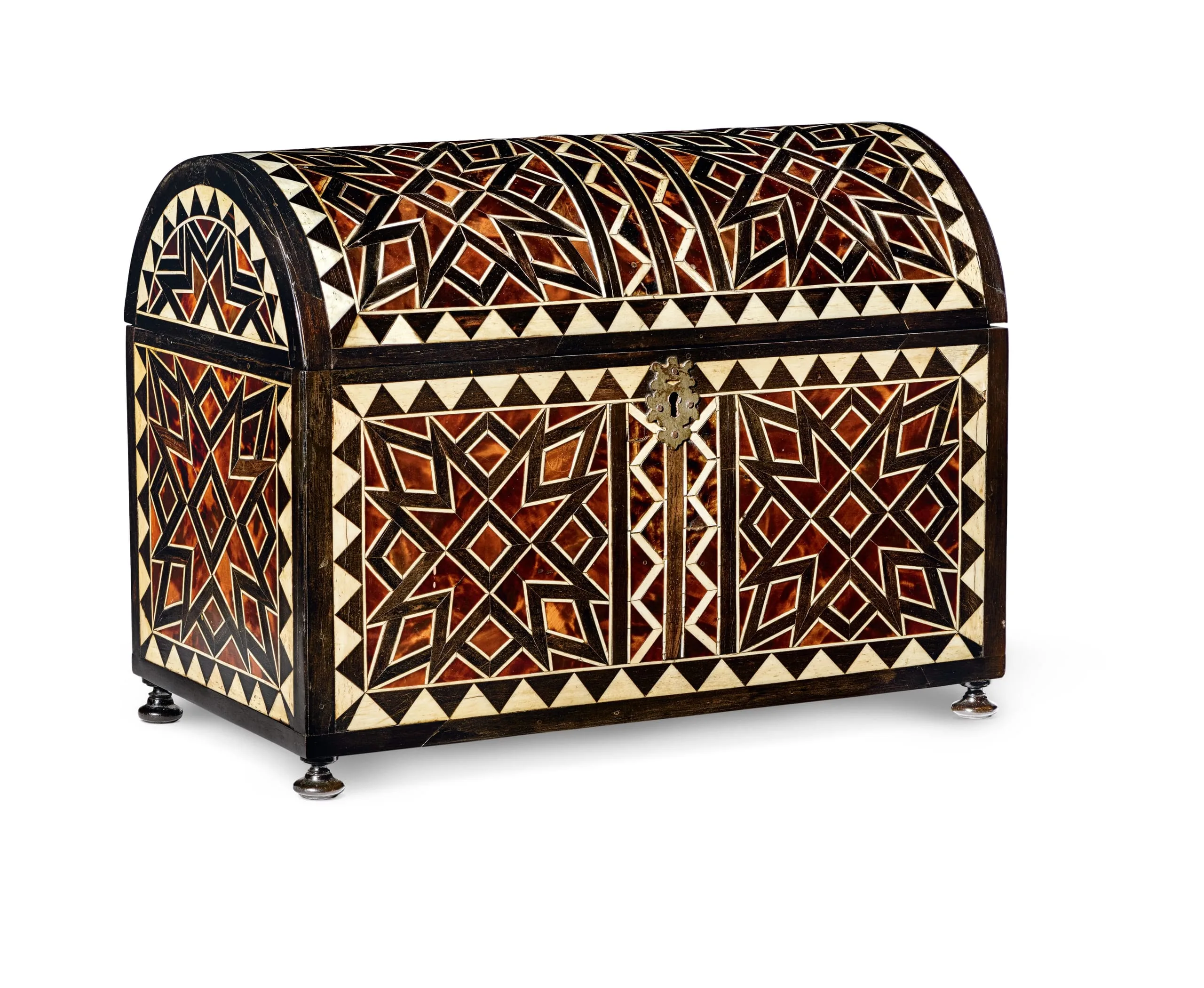 Luxury boxes were highly prized throughout Spanish America. Traditionally, this type of intricate geometric decoration was viewed as a byproduct of the Mudéjar style that originated with Arab craftsmen living in Spain between the eleventh and fifteenth centuries, which subsequently traveled to Mexico with the Spanish colonists. Recent scholarship, however, has argued for a more complex origin of similar patterns grounded on a wide range of Western-European sources.