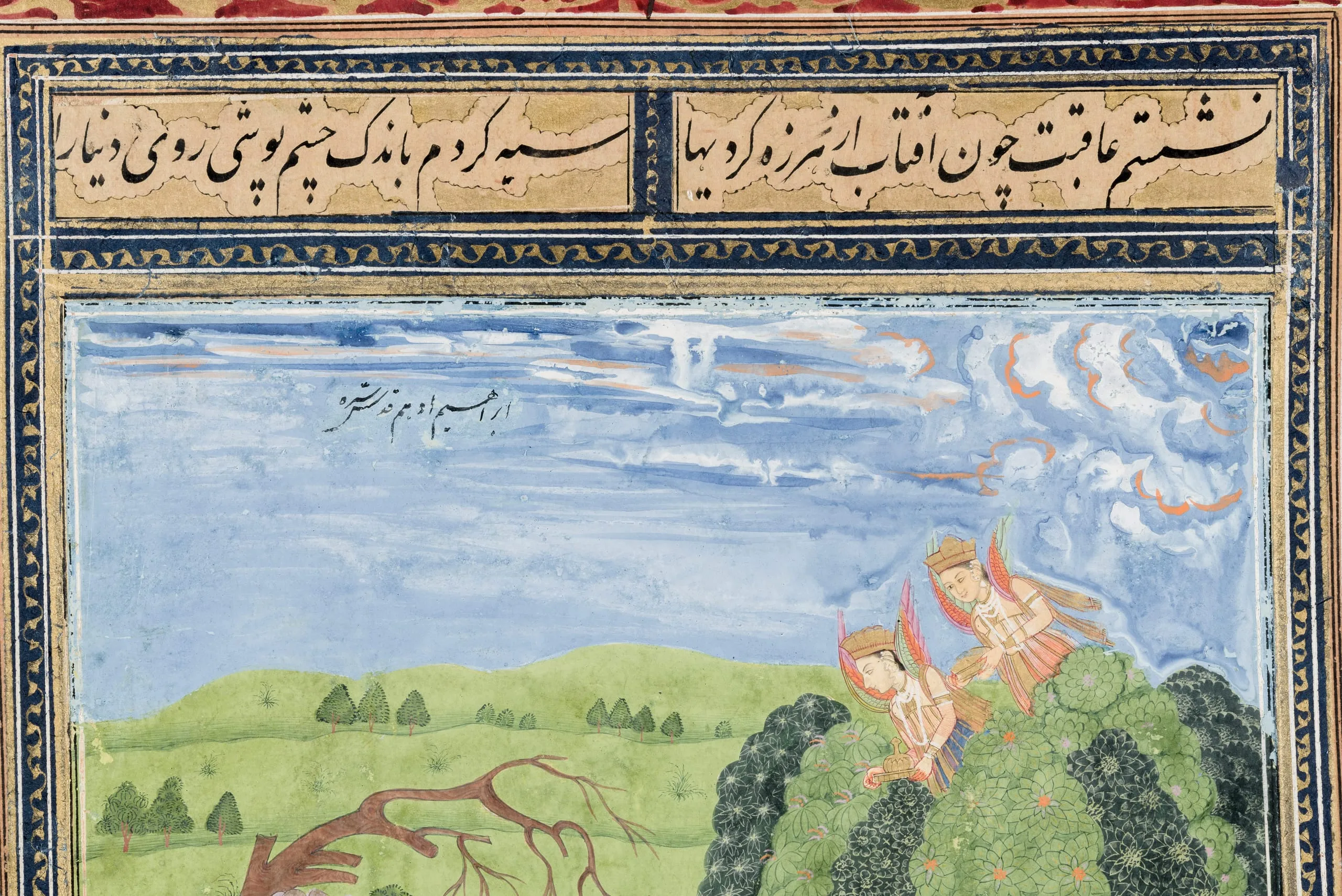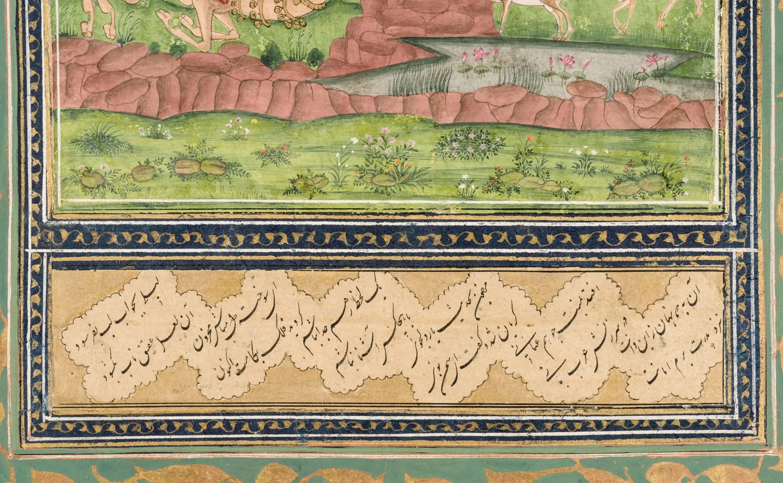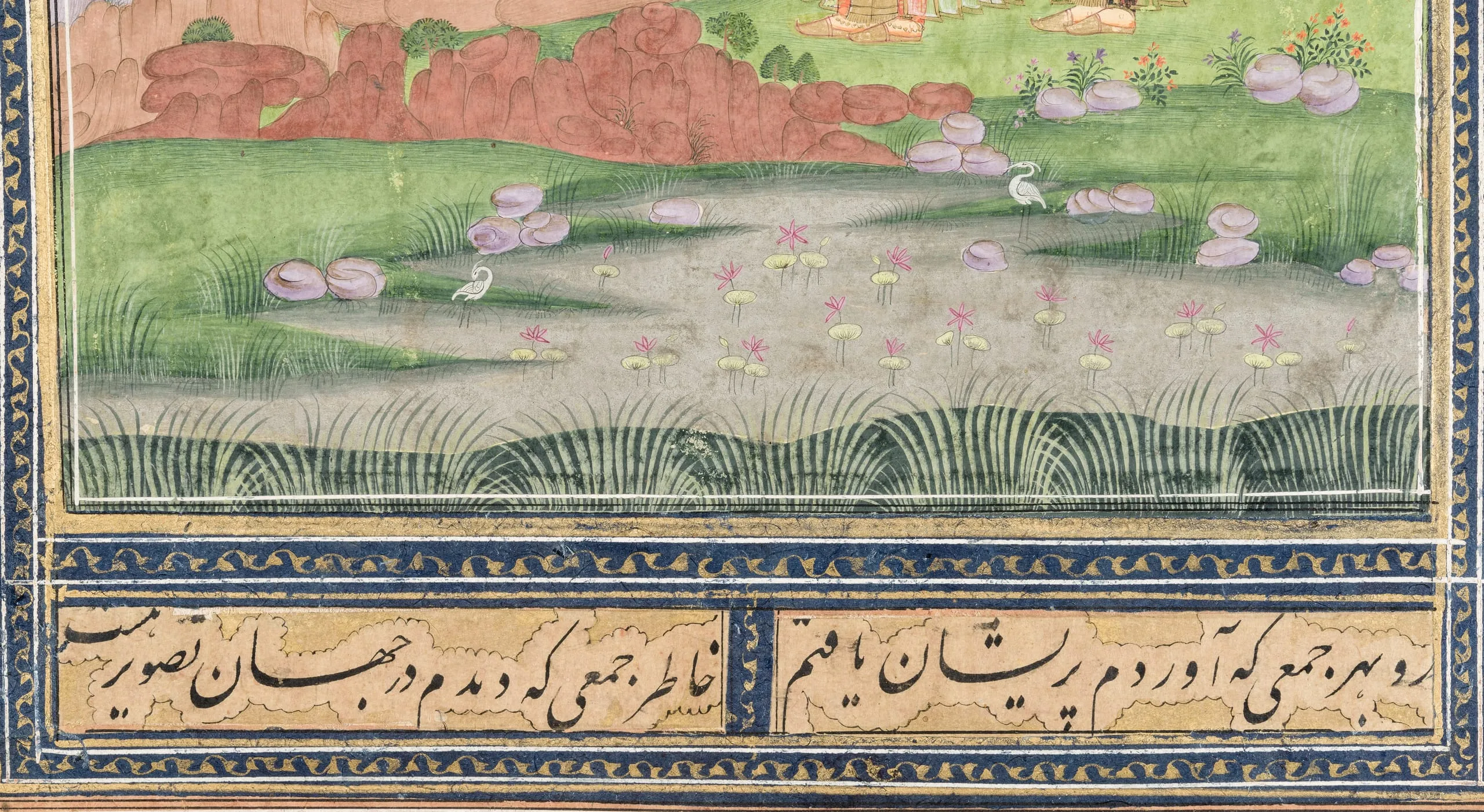 - Opaque watercolor, gold, and ink on paper mounted on board, leather binding