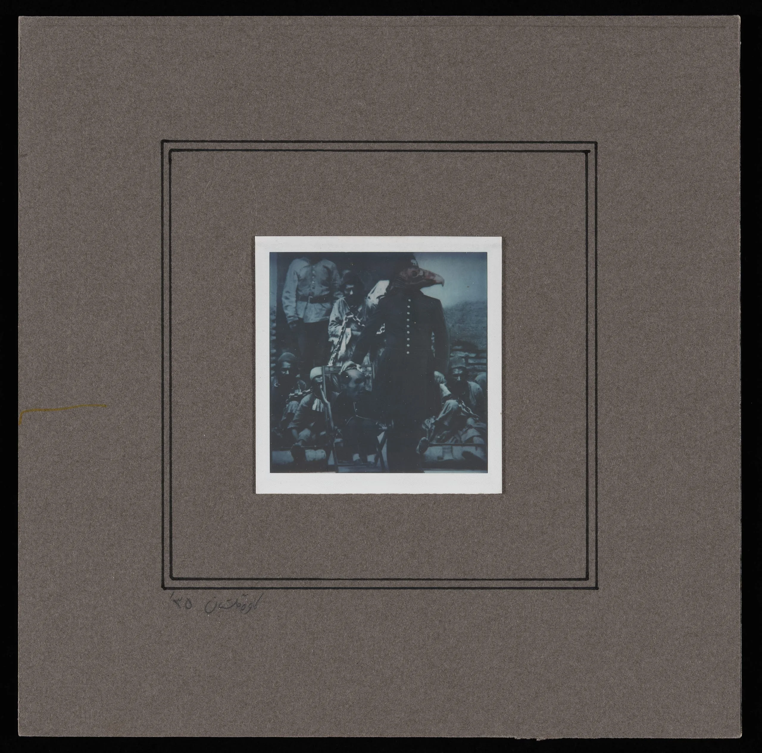 His groundbreaking 1976 series Az Div o Dad ("Of Demon and Beast" taken from a poem by Rumi "I am weary of demon and beast, I seek humanity") is comprised of innovative and striking images shot in Polaroid by moving collaged fragments in front of an open shutter over long exposures. The process produced surrealistic and fantastical pictures that seem to blend macabre fairytales with history, by appropriating found photographs and other images from the 19th and early 20th century, including previously untouchable depictions of Qajar monarchs. The collages create powerful visions of anthropomorphic, lizard-headed kings and leonine army officers, set against natural and architectural backgrounds referencing both the 1970s and the late Qajar era. These works introduce the experimental side of Golestan’s practice, which has received little critical attention to date although his satirical manipulation of historical figures, most notably members of the Qajar royal family, have prompted a new generation of artists to use images of deposed kings as a means of questioning and critiquing their own present-day leaders.
