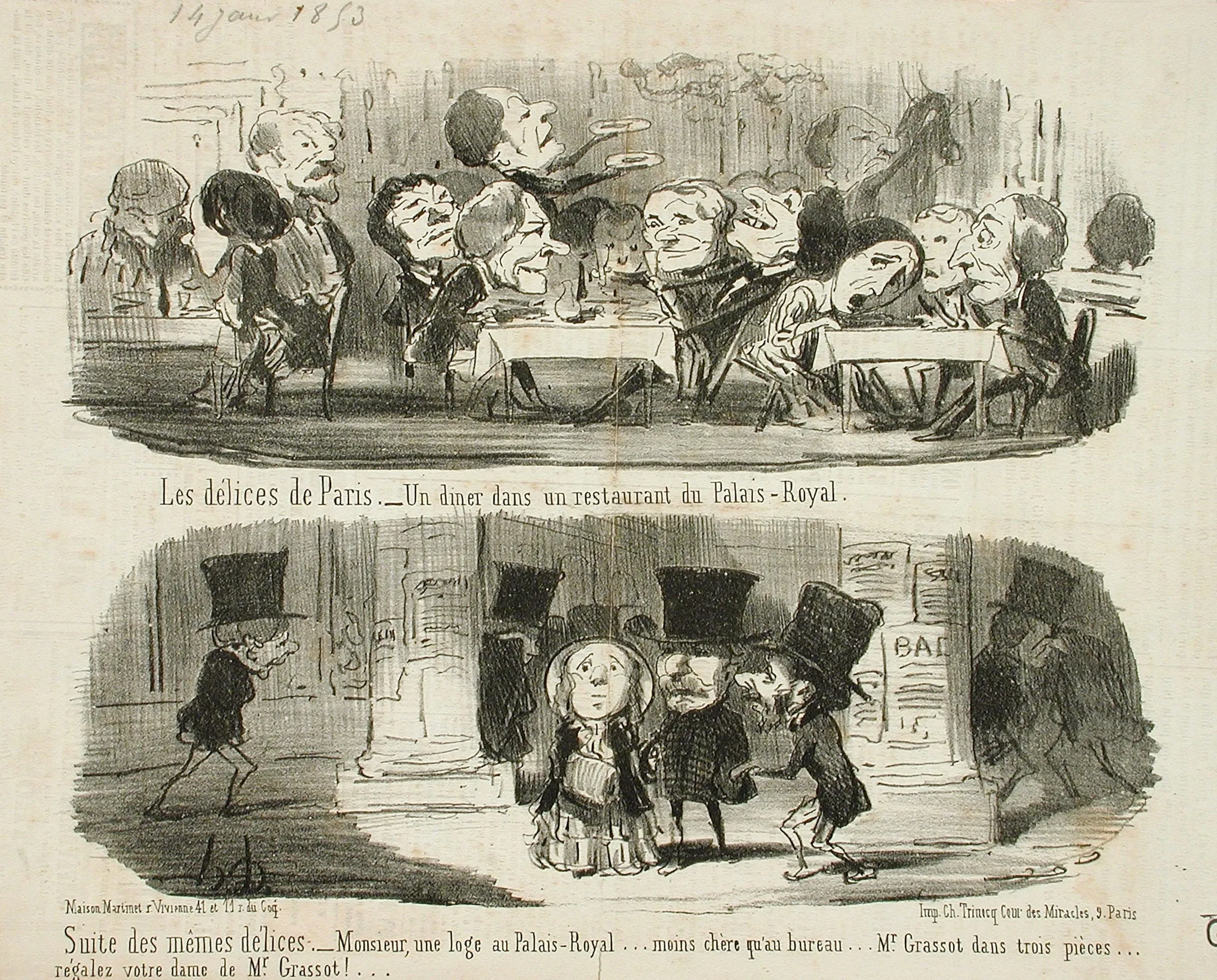 - Les Délices de Paris - Une diner au restaurant de Palais-Royal; Suite des mêmes délices - Monsieur, une loge au Palais-Royal