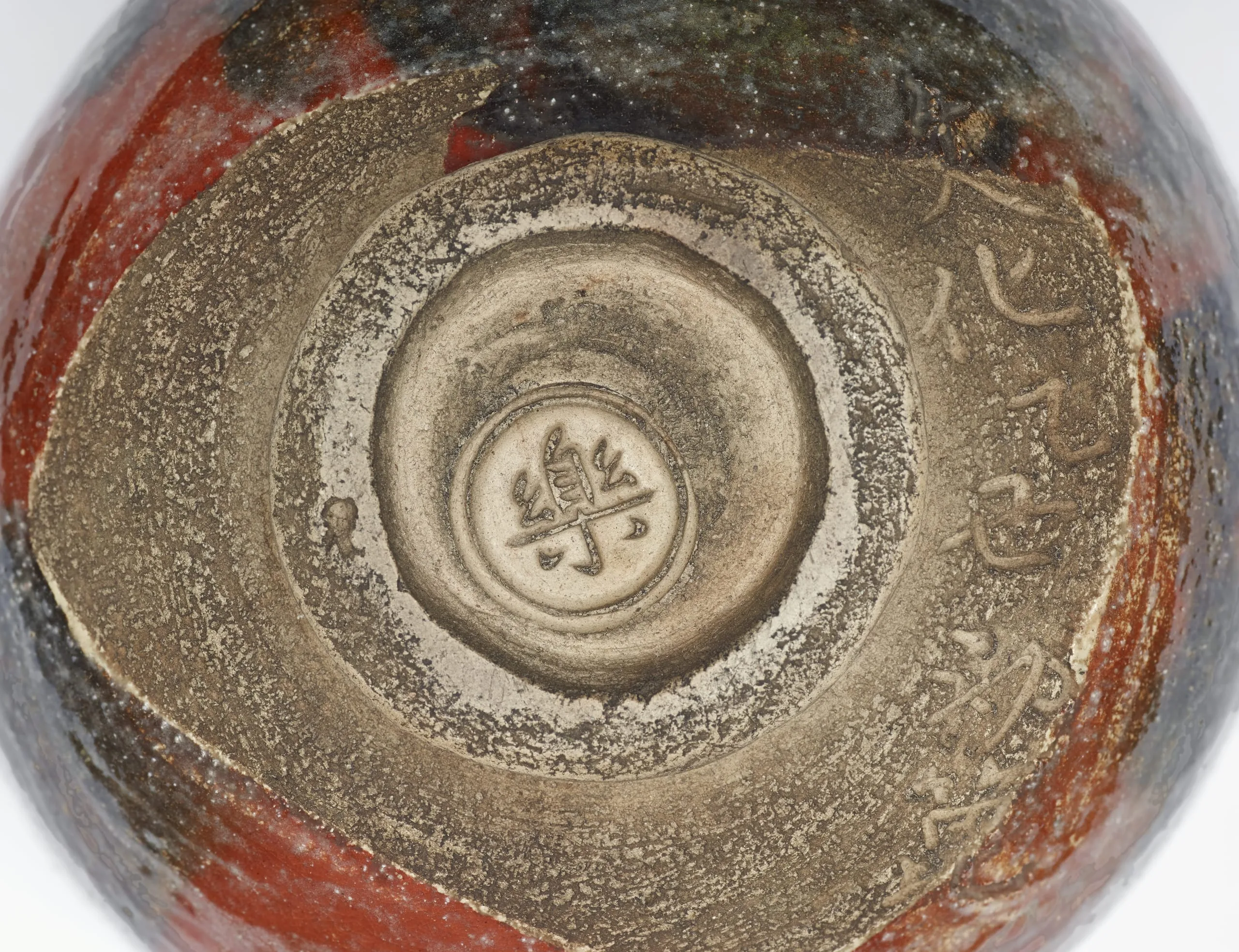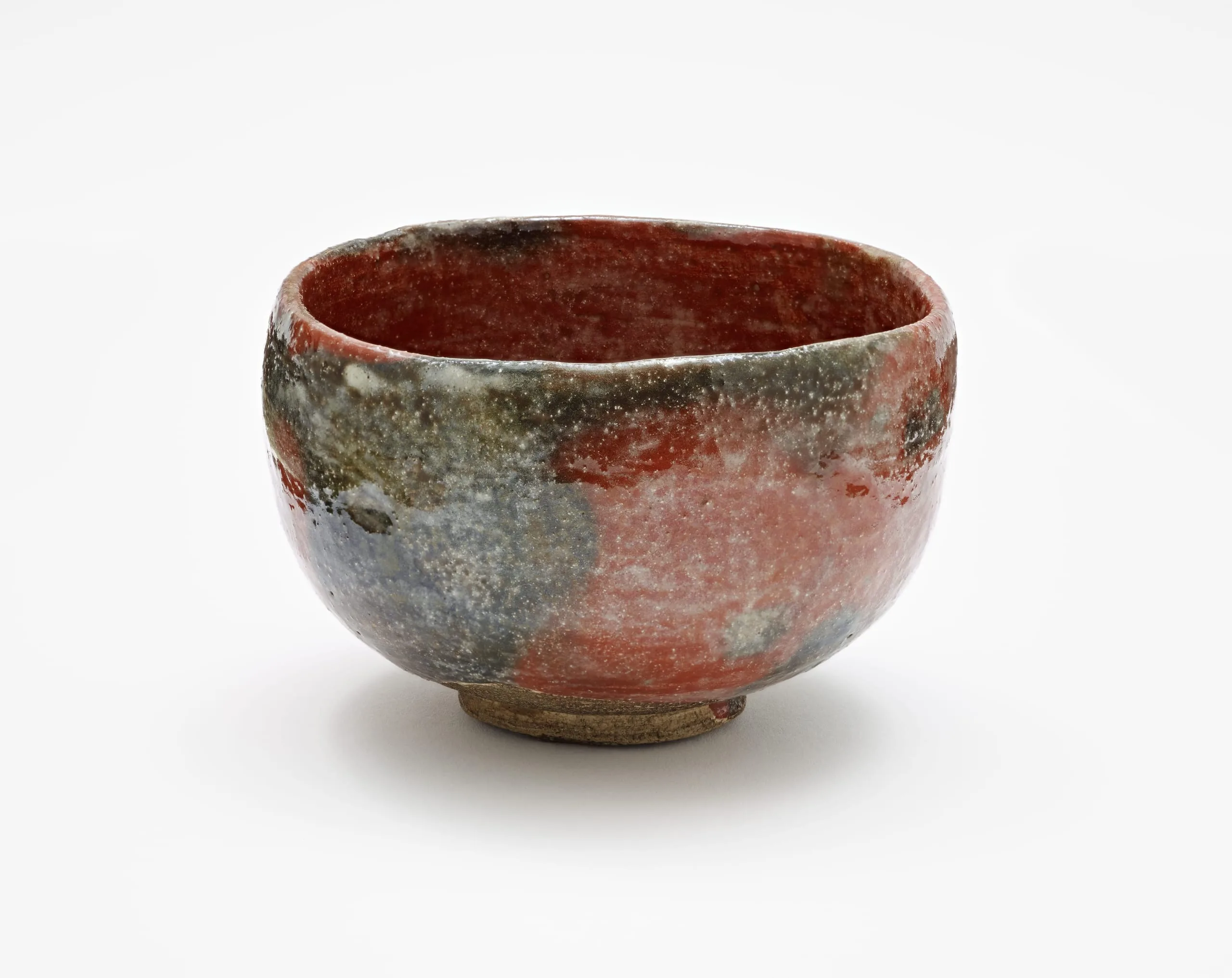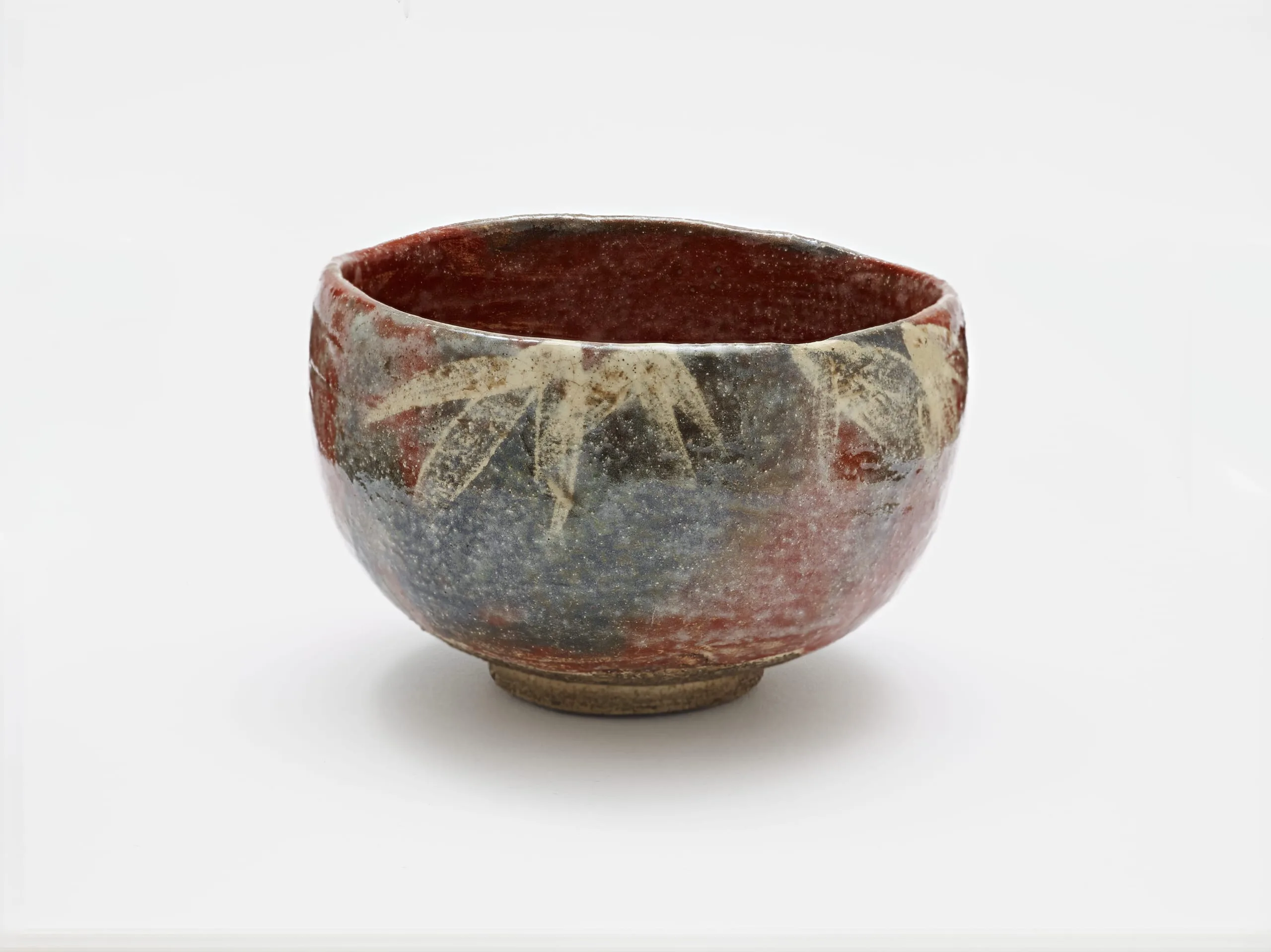 - Red Raku Tea Bowl with Design of Snow-frosted Bamboo