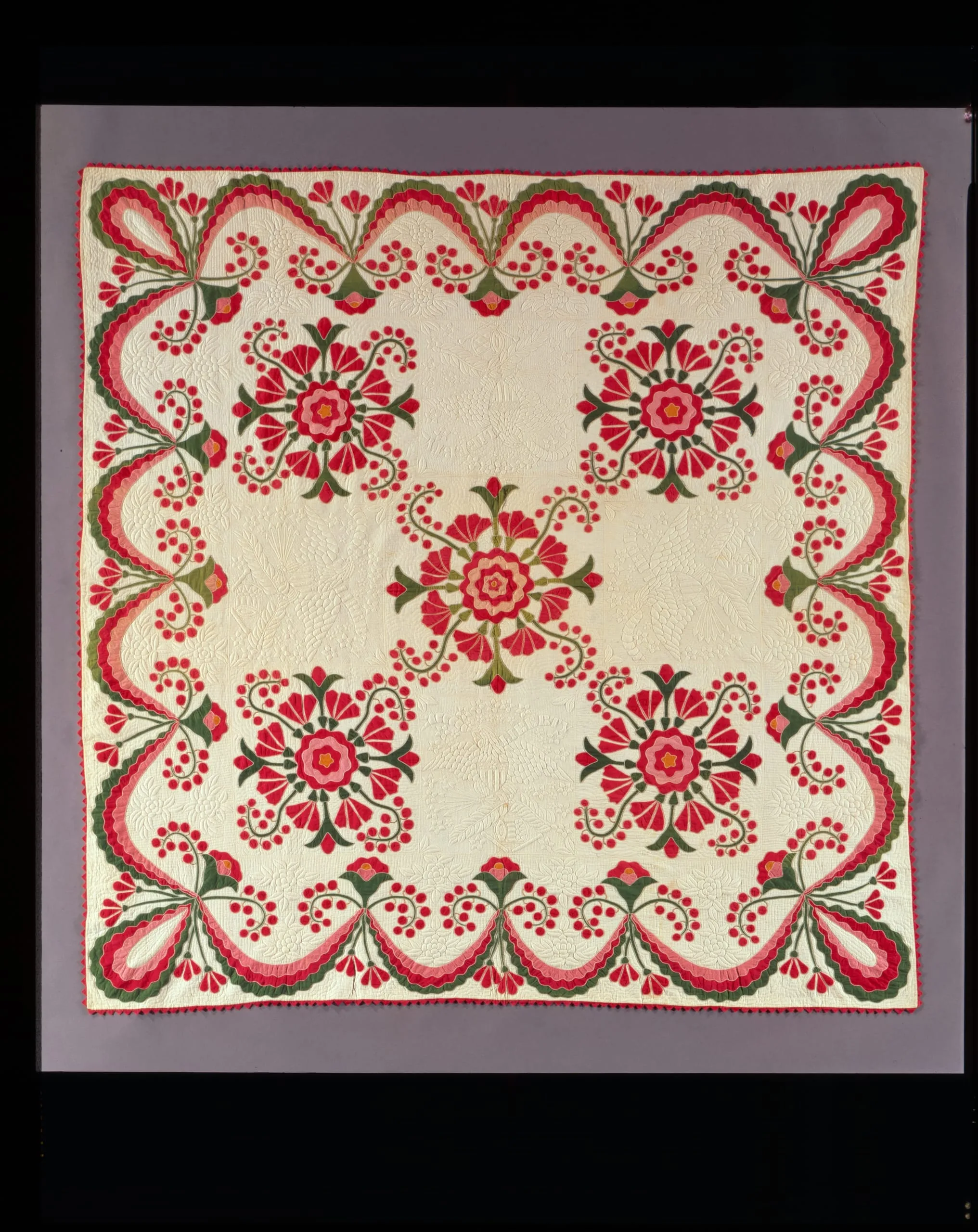 - Quilt, 'Buchanan's Banner' with 'Rose of Sharon,' 'Lotus Flowers,' and 'Currants'