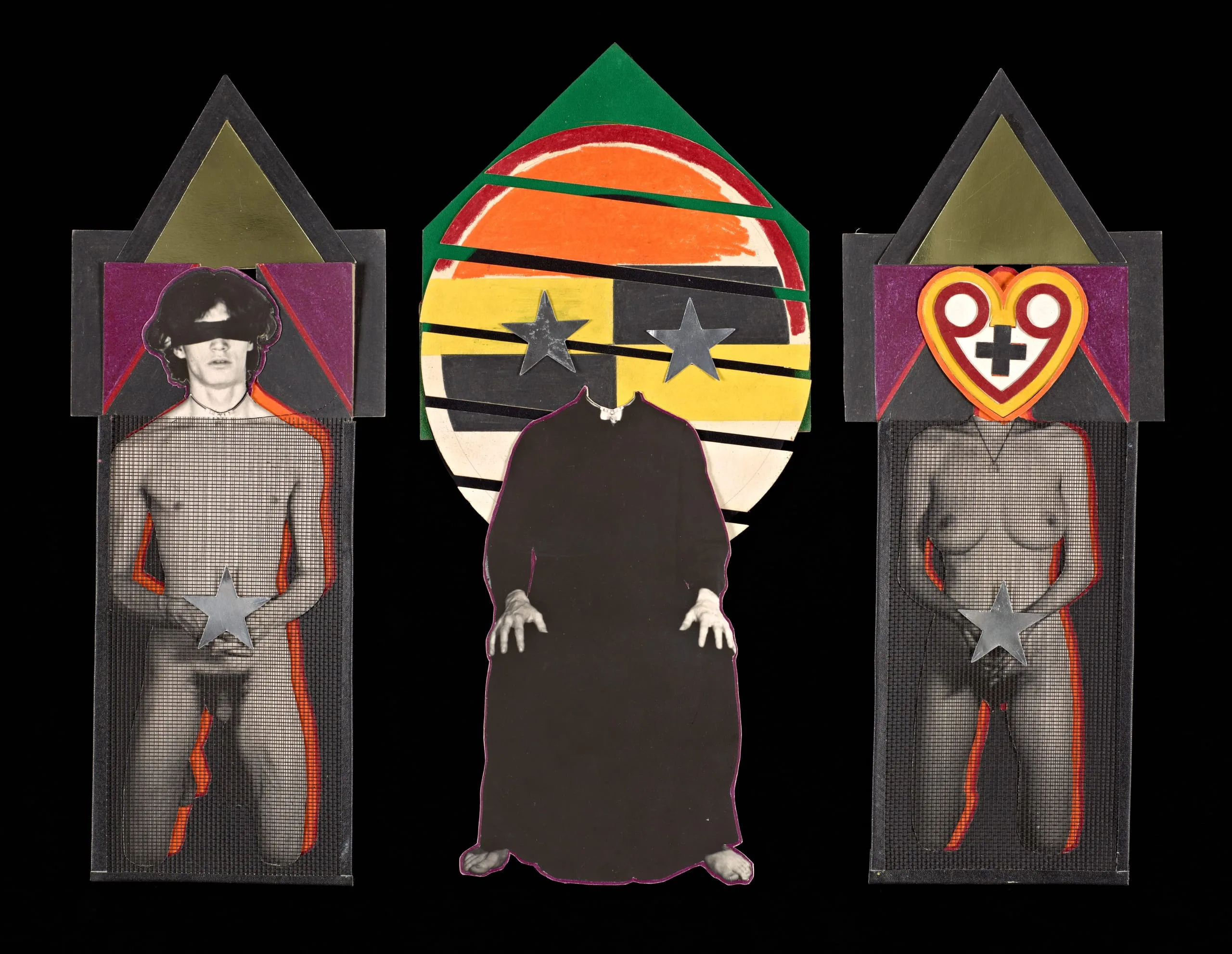 - Gelatin silver prints (by Lloyd Ziff, United States, 1942), found images, paper, metal screens, stickers, laminate, velveteen paper, envelope