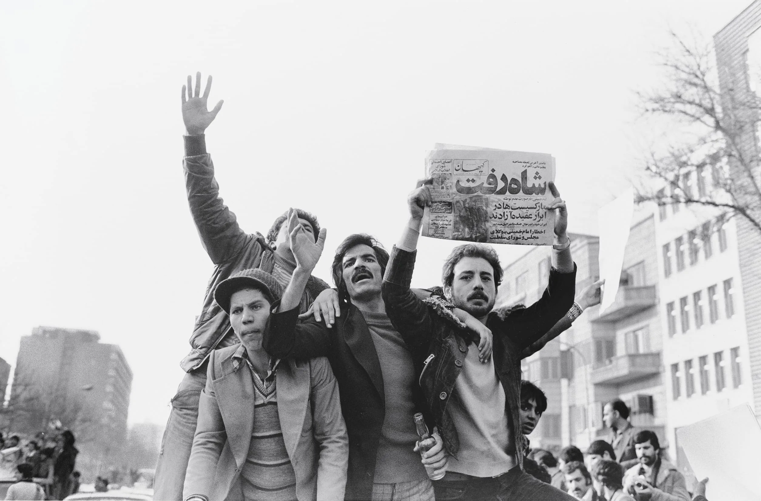 Best known as a documentary photographer, Kaveh Golestan in 1979 was awarded the Robert Capa Gold Medal for his brilliant visual account of the Iranian Revolution. This photograph is from that body of work and records the jubilant throngs (a member of which holds aloft a newspaper featuring the historic headline, "The Shah Left") that filled Tehran’s streets following the departure of the shah.