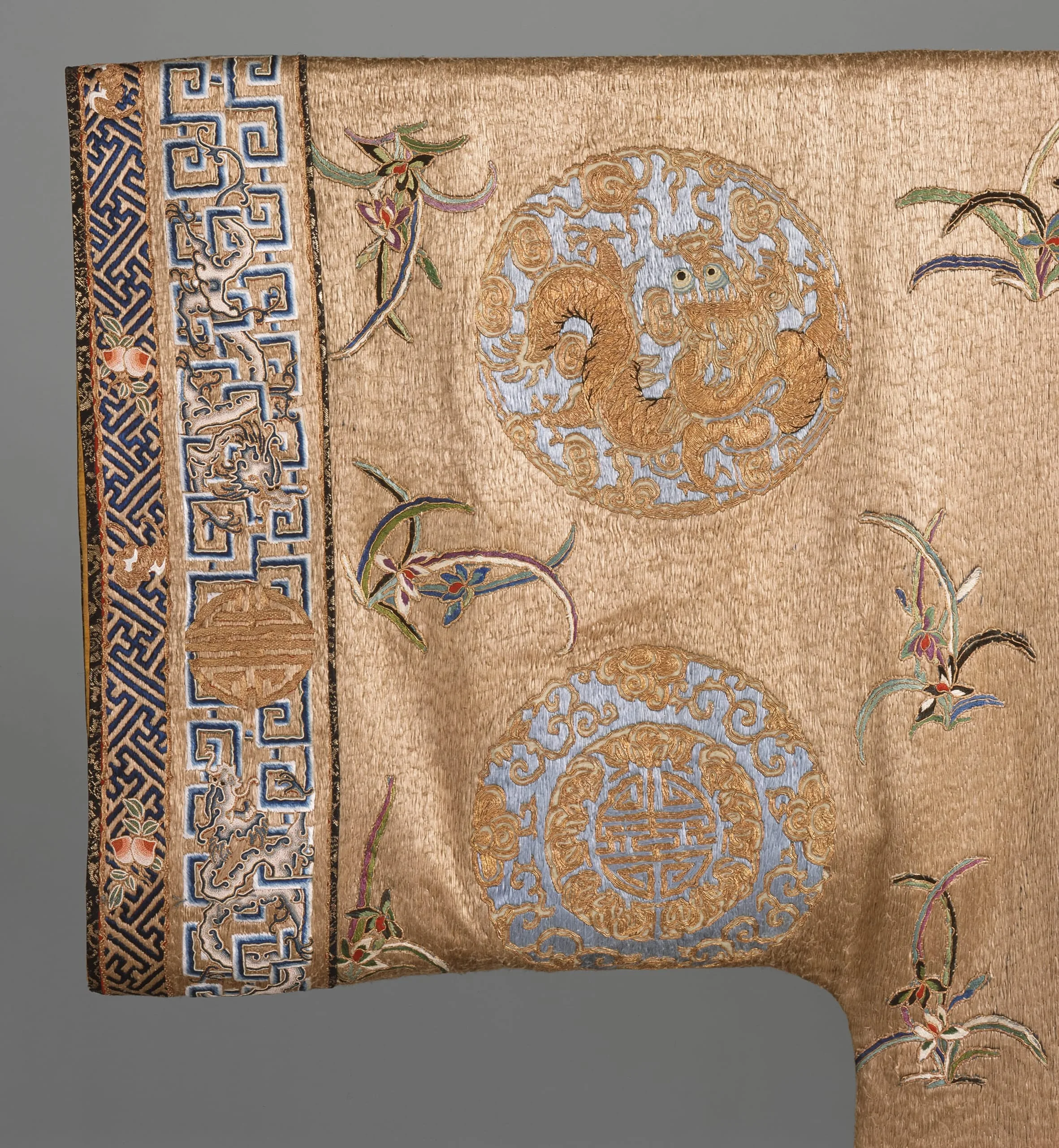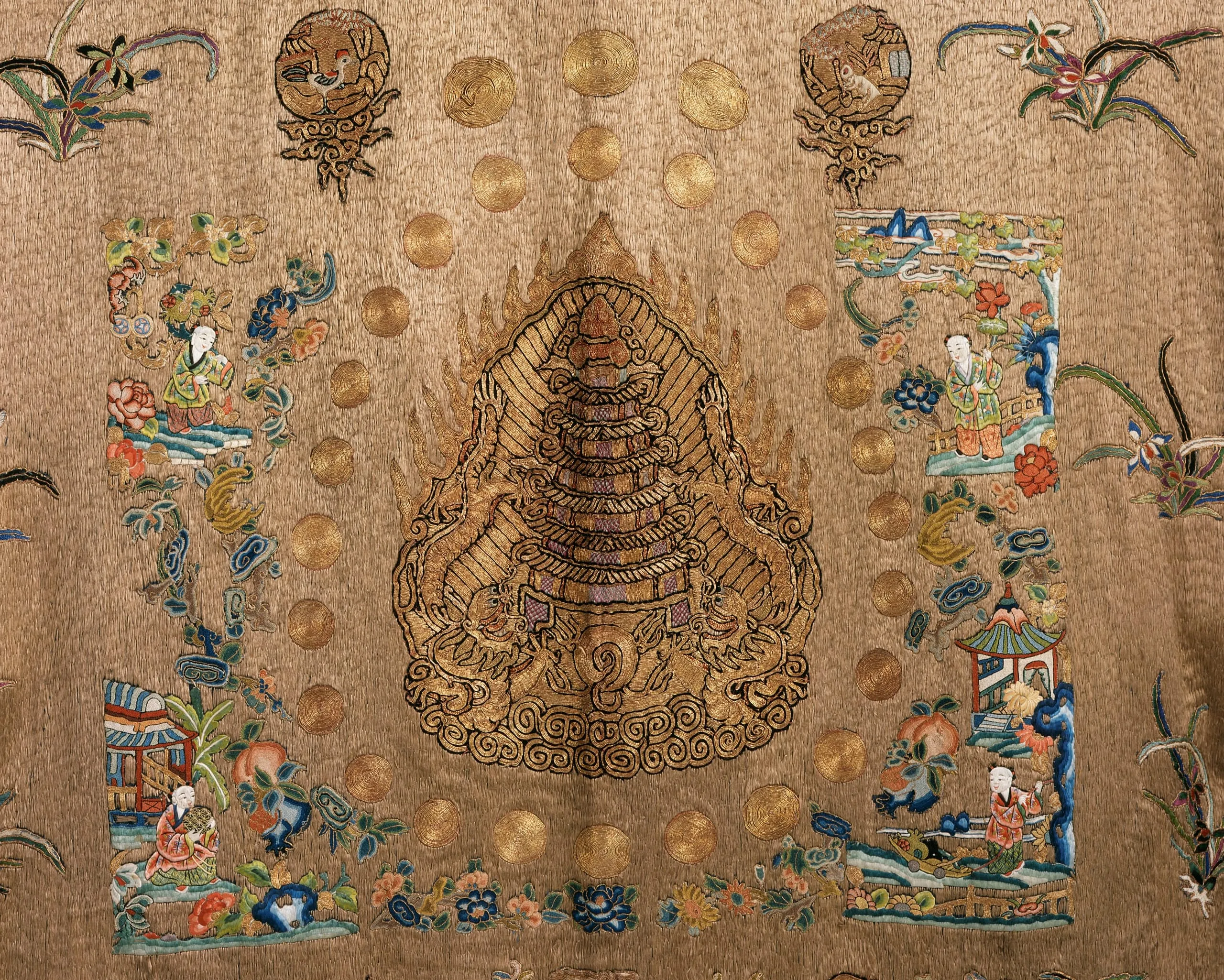 - Silk and metallic thread embroidery on cotton gauze weave