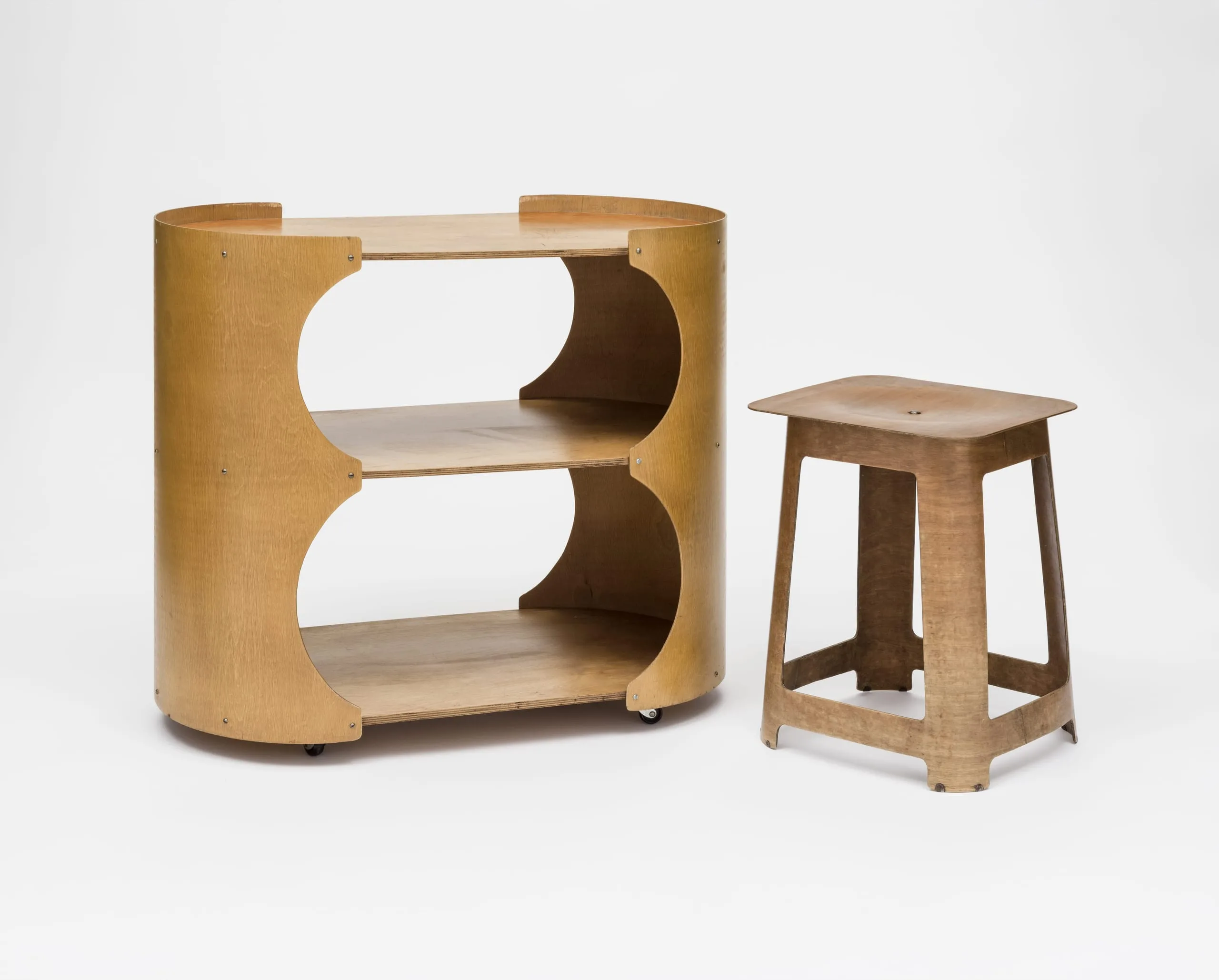 The stool provides a fascinating, complicated story of design transmission and collaboration. In the early 1930s Prichard had worked for the Venesta Plywood Company in Estonia. When he joined Isokon, he initially imported the plywood furniture from Venesta, but soon applied the knowledge gained in Estonia to his own line manufactured in England. However, he also continued to import from Estonia furniture he himself had designed. This stool has a paper label marking it as a Venesta product, but it is a Prichard design then altered by Gropius.