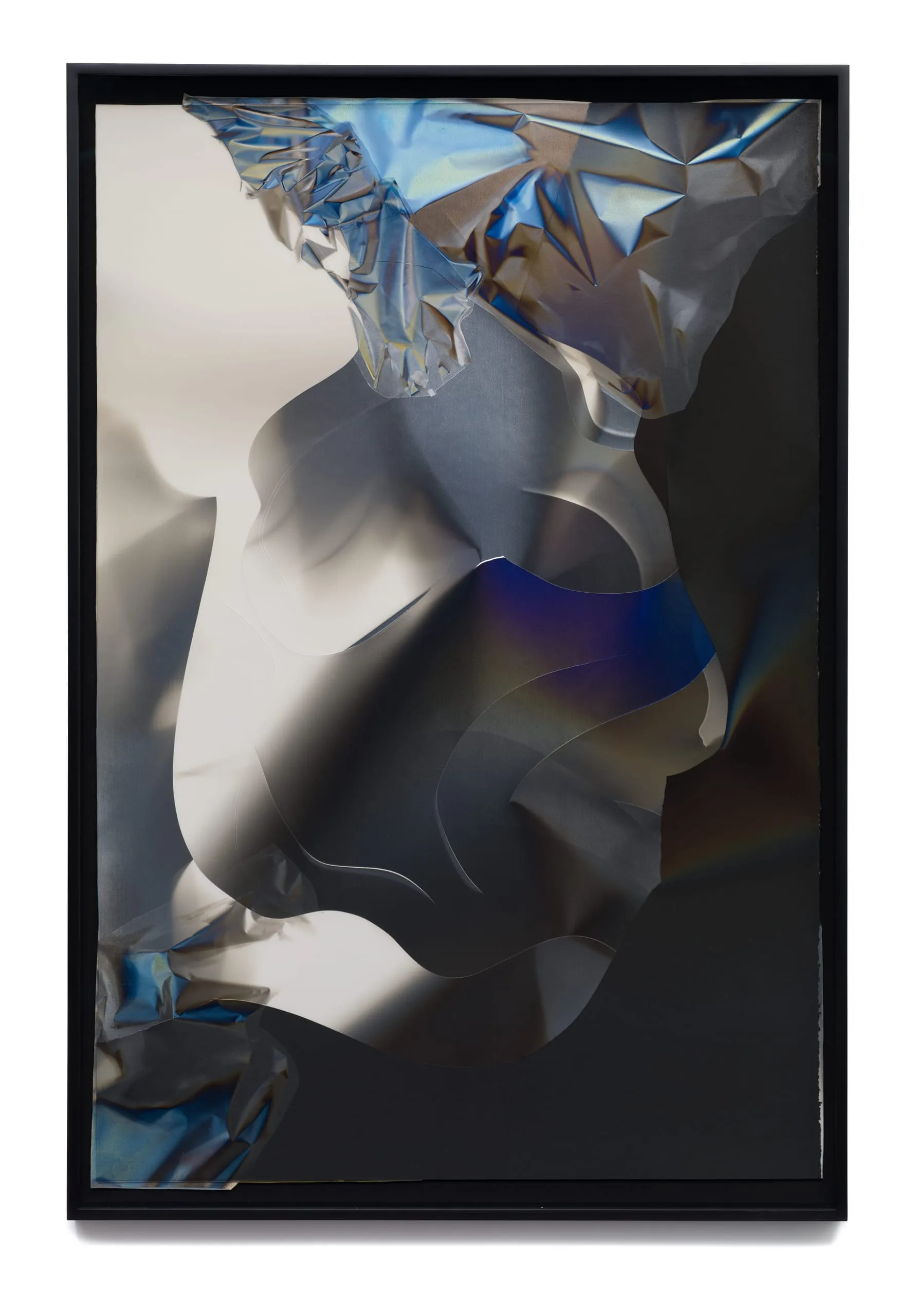 - Aluminum and silicon monoxide on paper mounted on canvas, in powder-coated metal frame with Optium