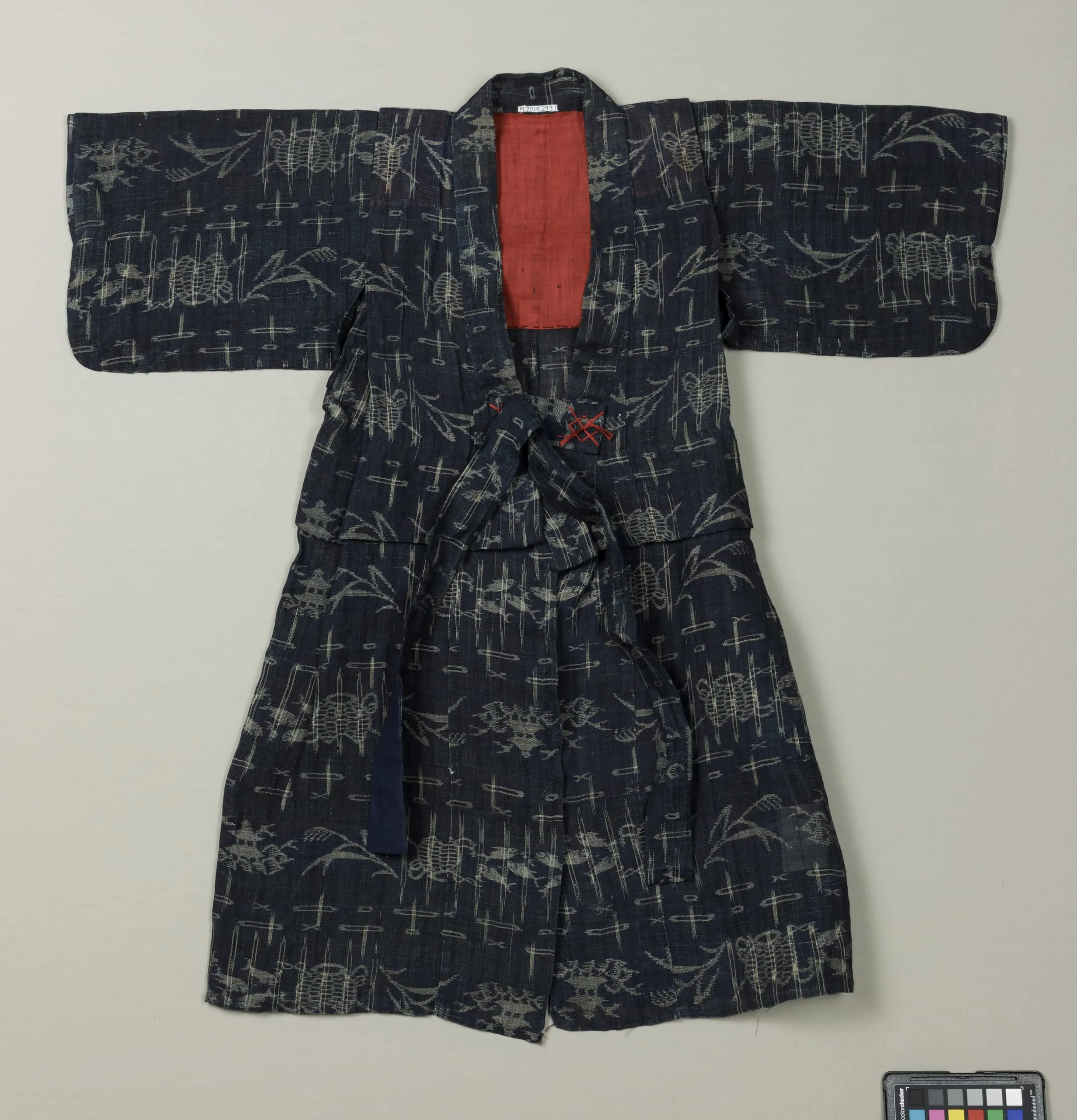 - Handspun bast fiber (asa), tie-resist-dyed warp and weft ikat (kasuri)