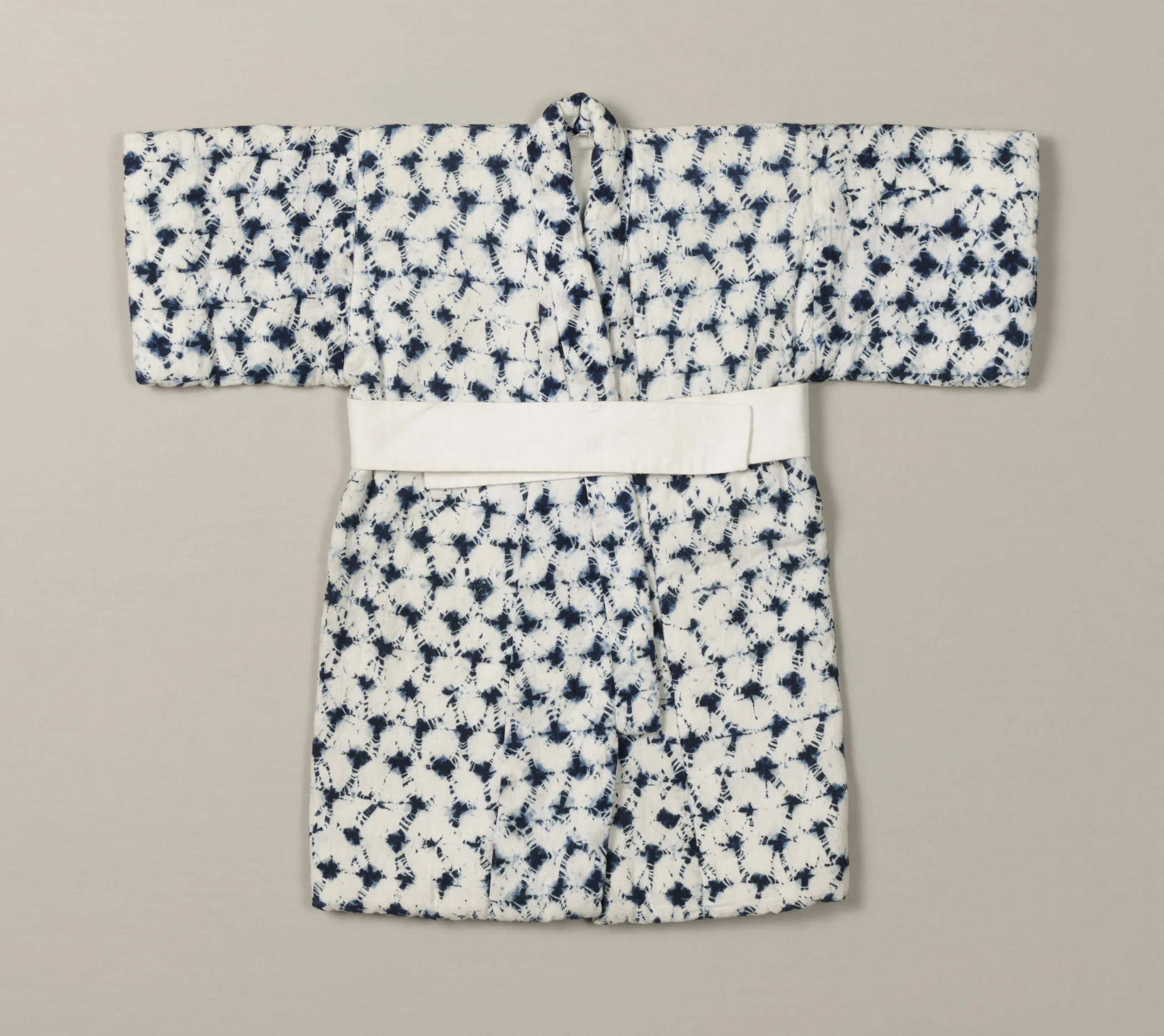 - Cotton plain weave, tie-resist dyed (kumo shibori)