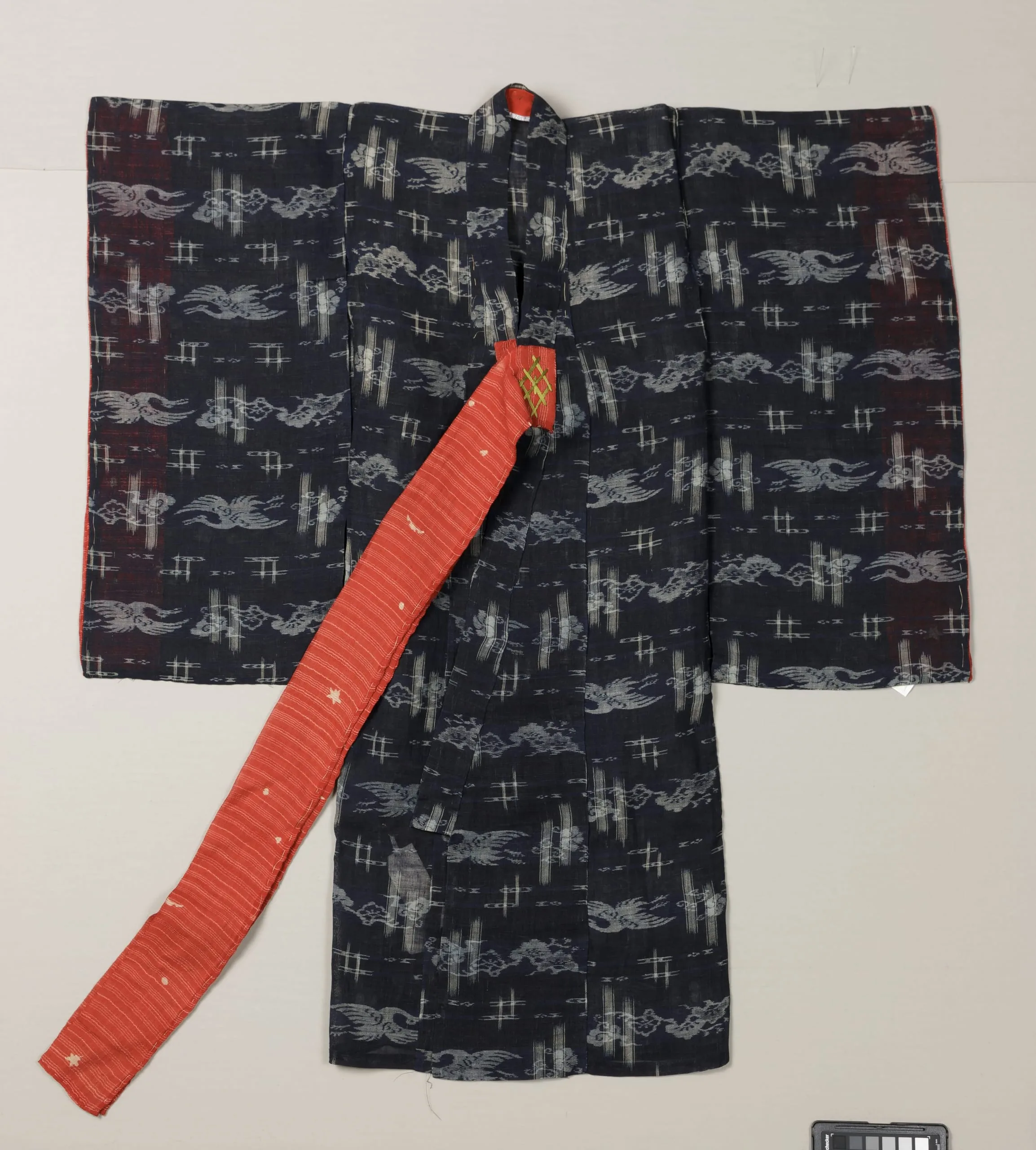 - Bast fiber (asa) plain weave, tie-resist-dyed warp and weft ikat (kasuri)