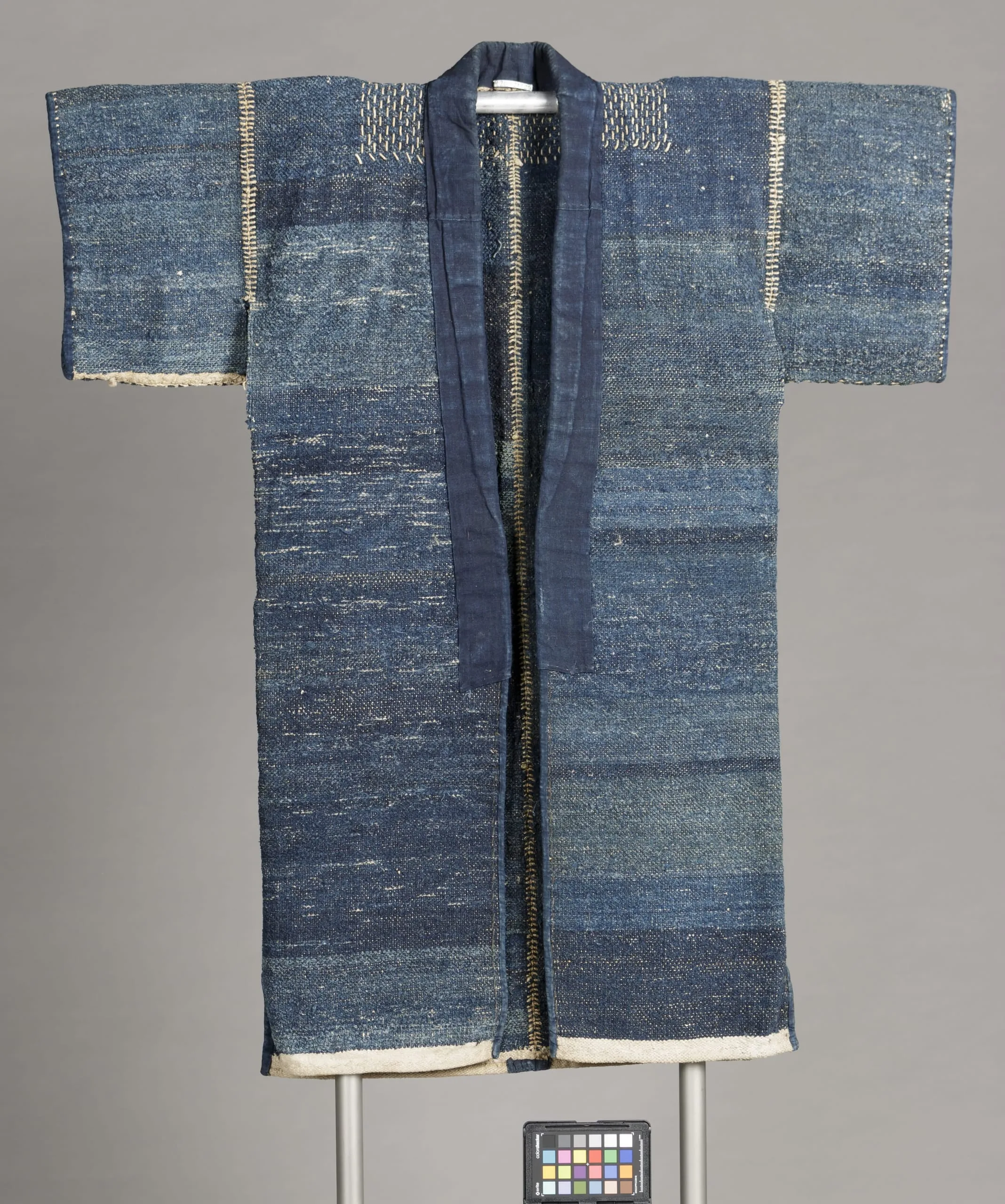 - Bast-fiber (asa) warp with torn cotton plain weave fabric weft (sakiori) with bast fiber (asa) embroidery