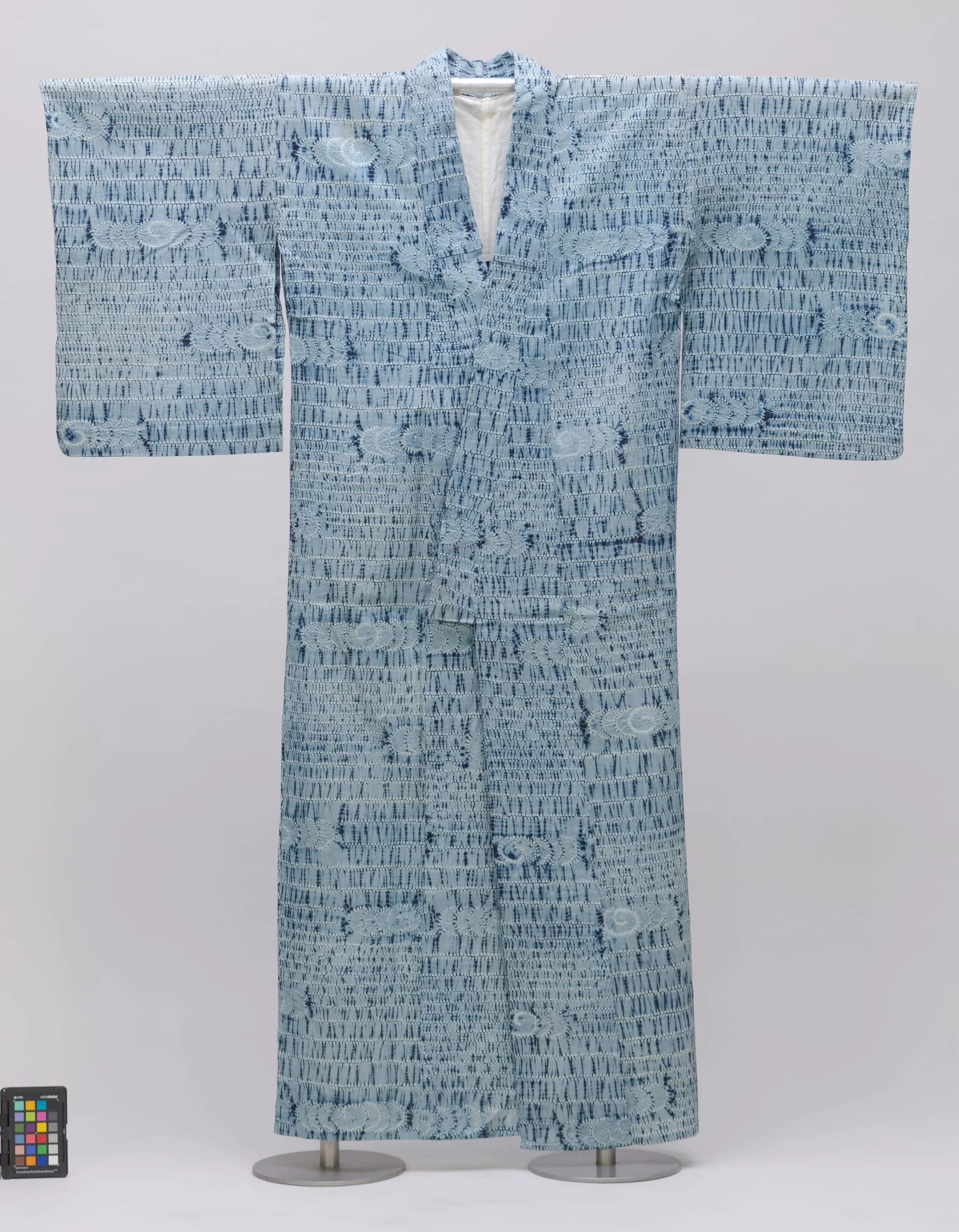 - Cotton plain weave, stitch-resist dyed (nuishime shibori)