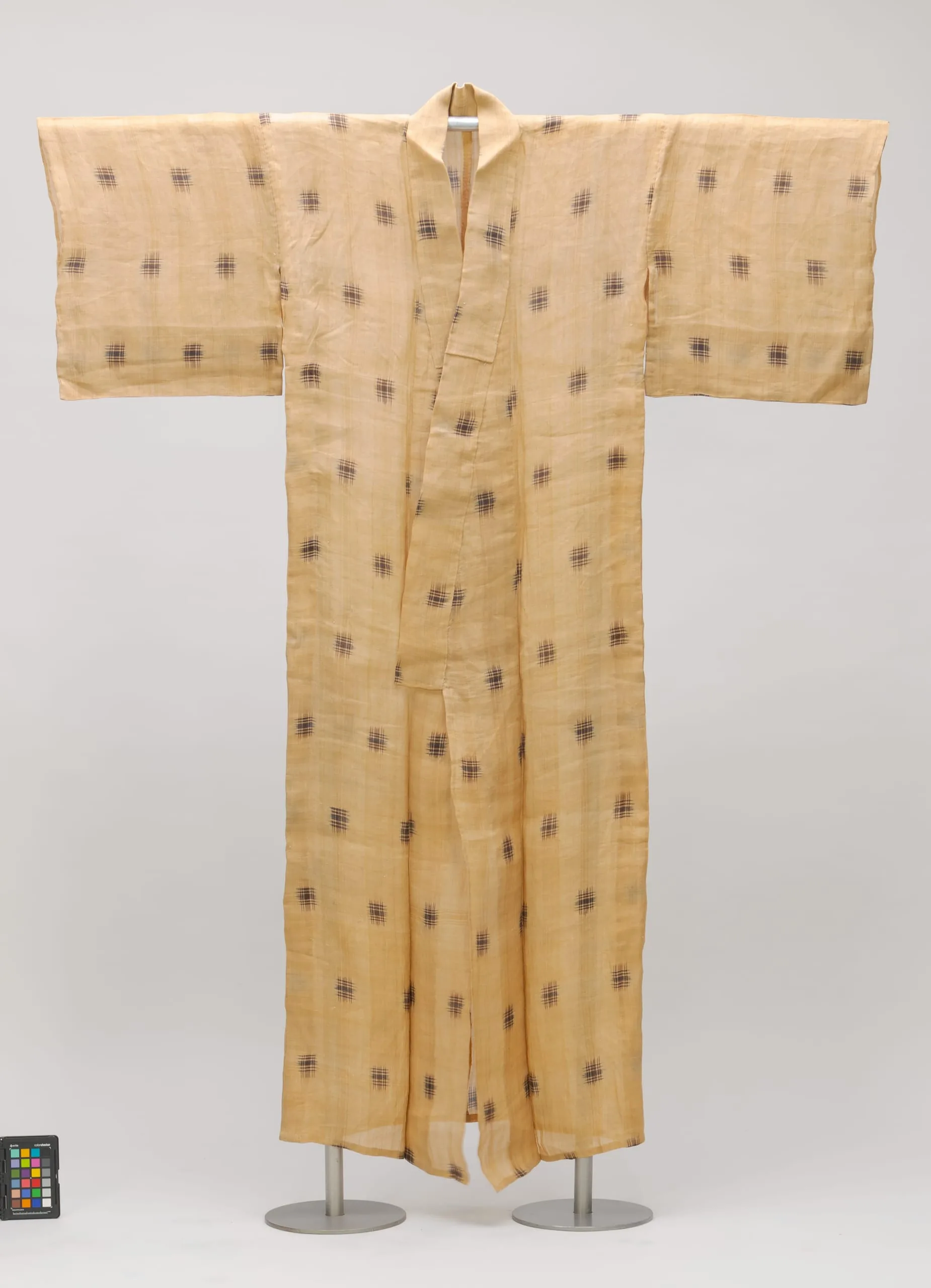- Banana-fiber plain weave (basho-fu), tie-resist-dyed warp and weft ikat (kasuri)