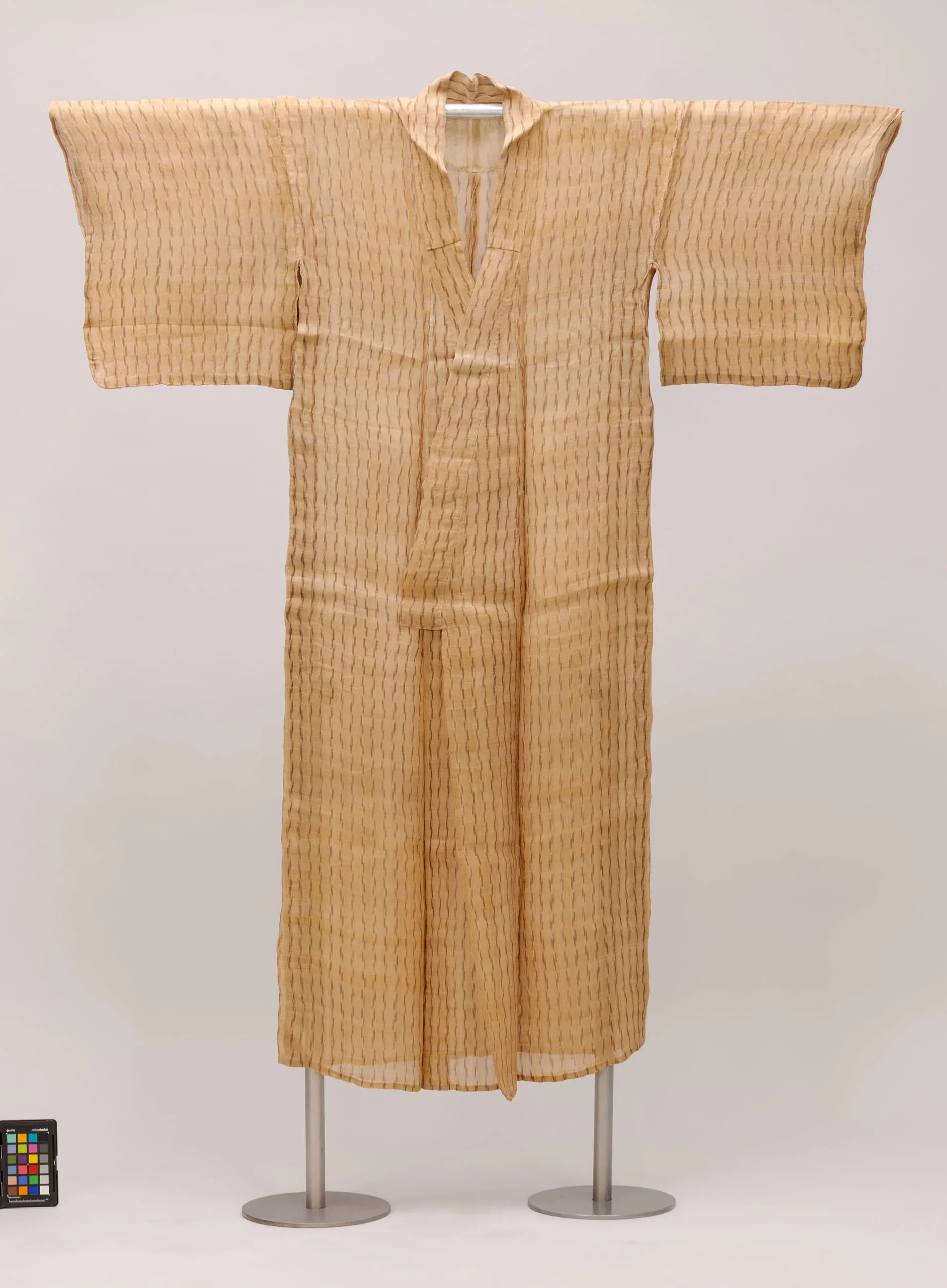 - Handspun Japanese banana-fiber plain weave (bashō-fu; Musa basjoo), tie-resist-dyed warp and weft ikat (kasuri)