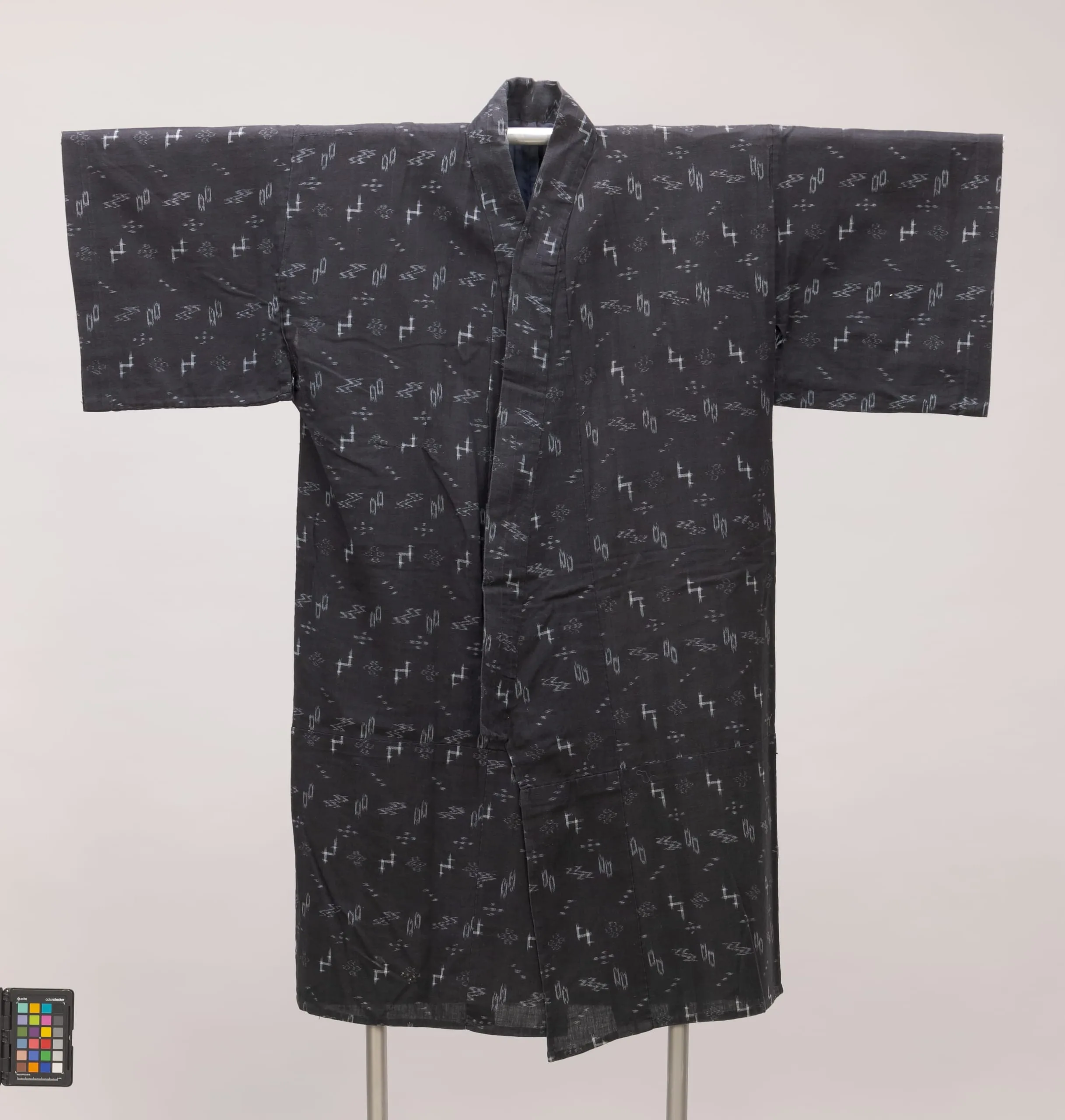 - Cotton plain weave, tie-resist-dyed warp and weft ikat (kasuri)