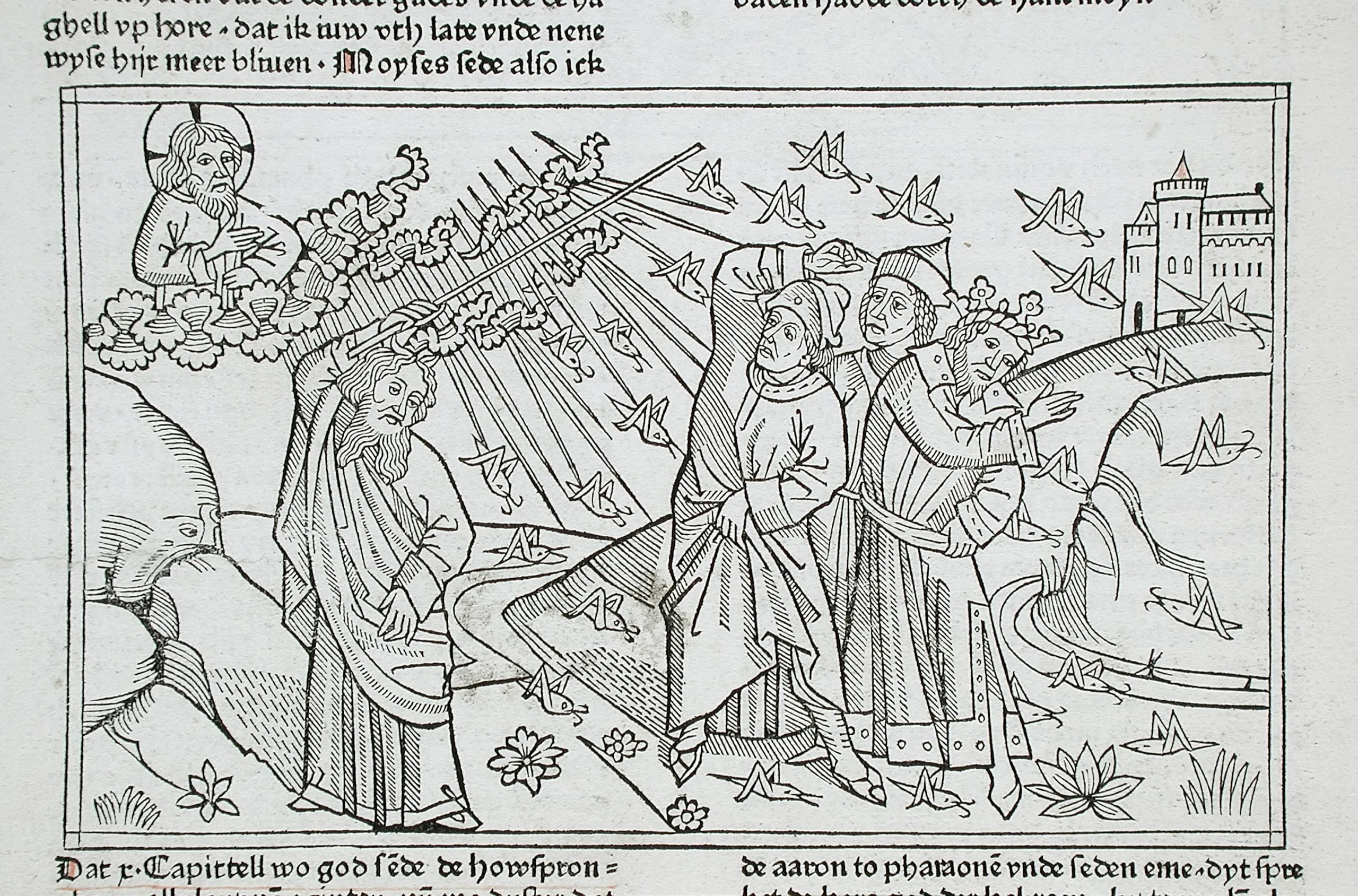 - God Sends the Locusts to Egypt (recto); God Sends Hail to Egypt (verso)