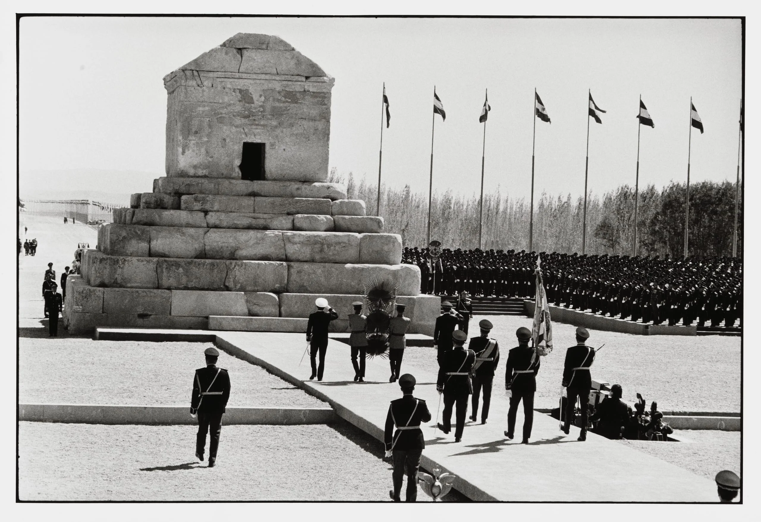 The lavish celebrations associated with the 2,500th anniversary of the founding of the Imperial State of Iran and First Persian Empire by Cyrus the Great in October 1971, have sometimes been referred to as the most expensive party in history. The festivities opened on October 12th, when the Shah paid homage to Cyrus at his mausoleum at Pasargadae, as captured in this photograph.
