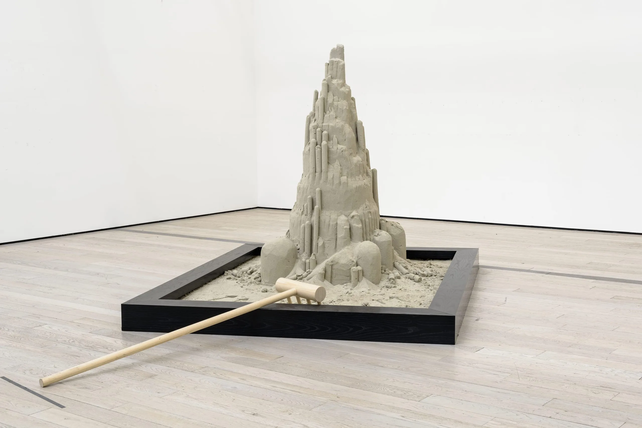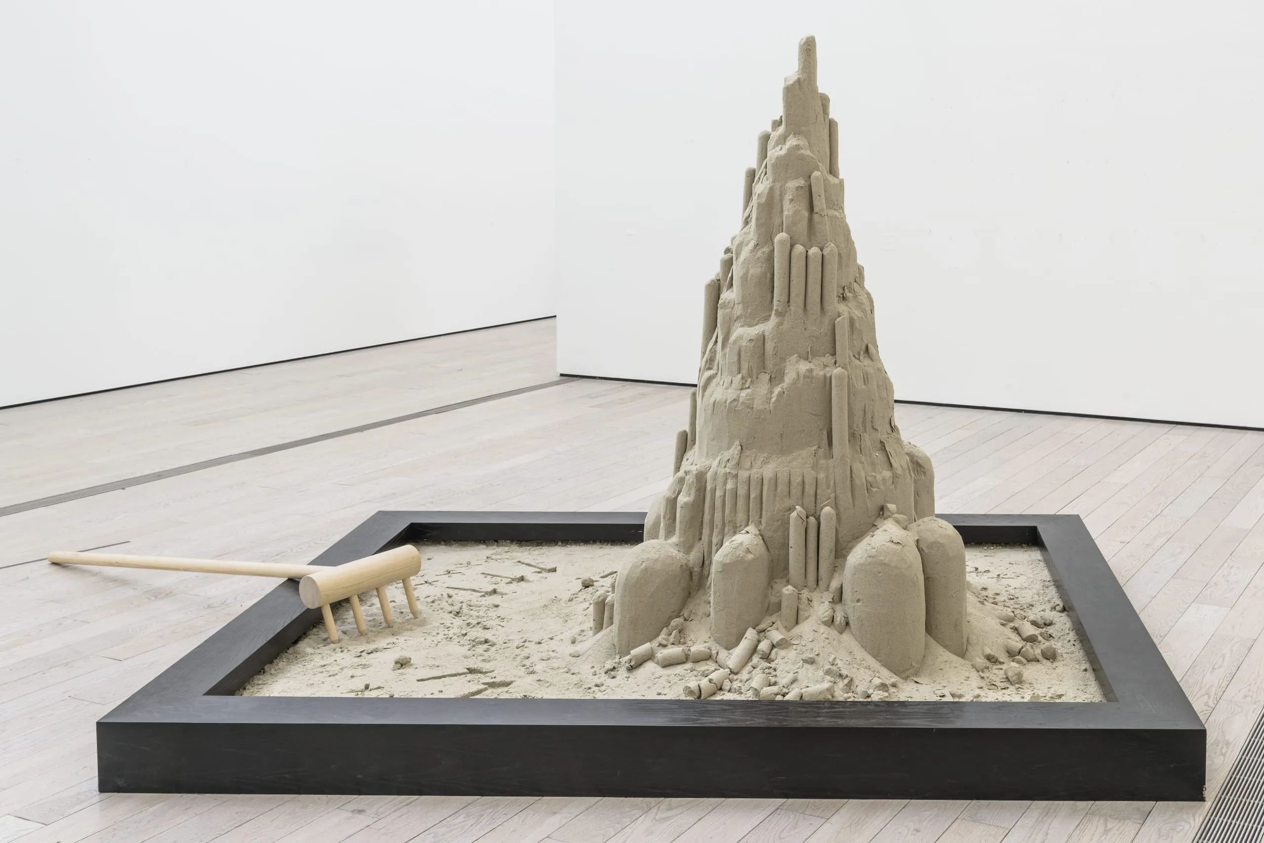 - Wood, paint, plastic tarp, sand, and water