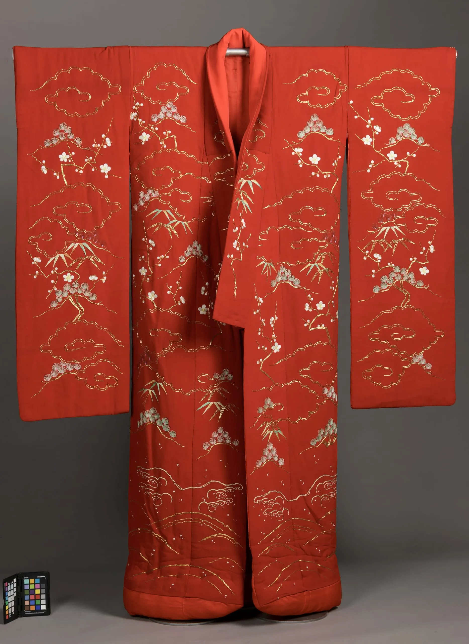 - Woman's Kimono with Cherry Blossoms, River, and Hills