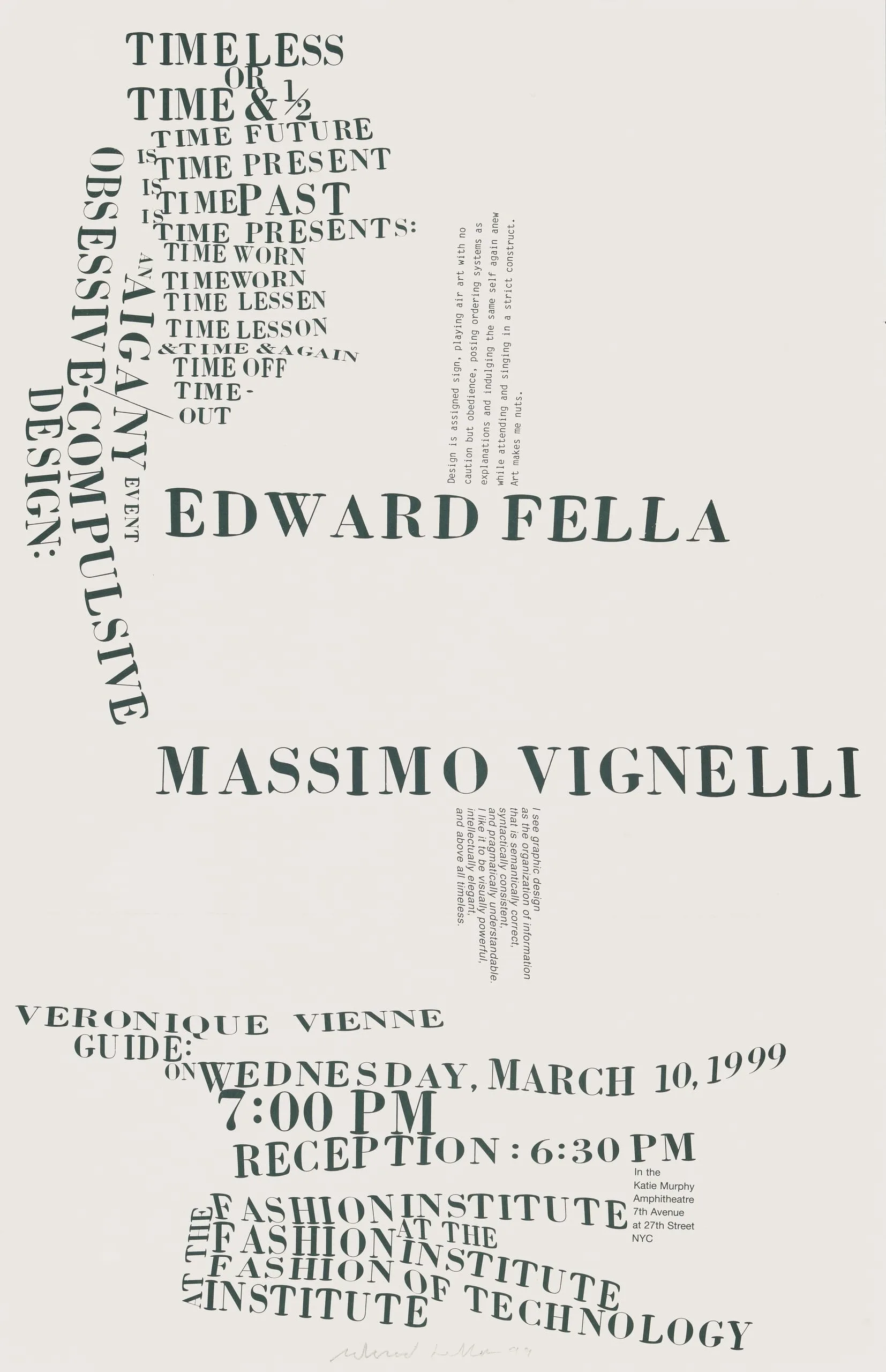 - Flyer for lecture with Massimo Vignelli at the Fashion Institute of Technology