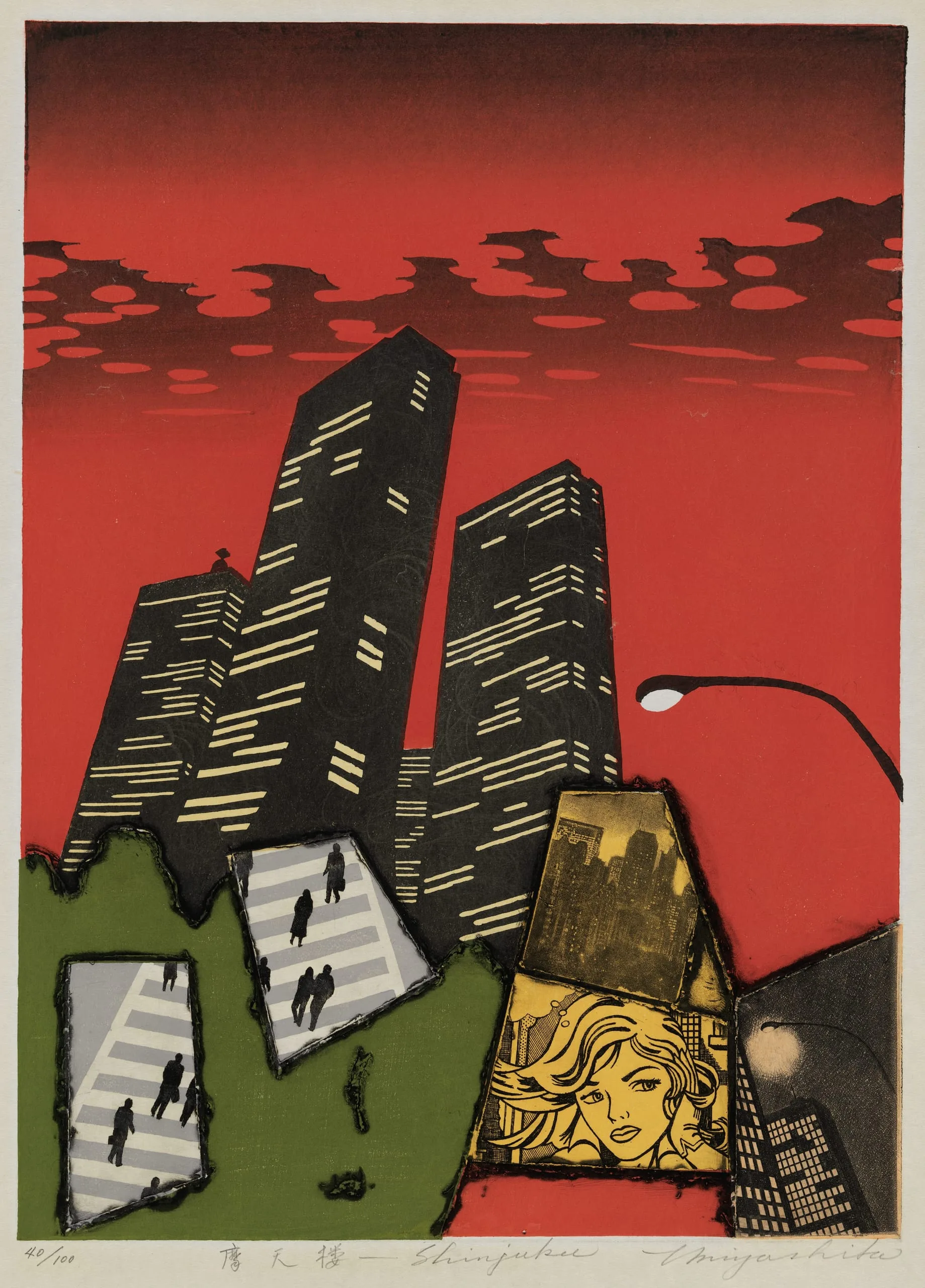 - Color woodblock print with intaglio in original paper folder