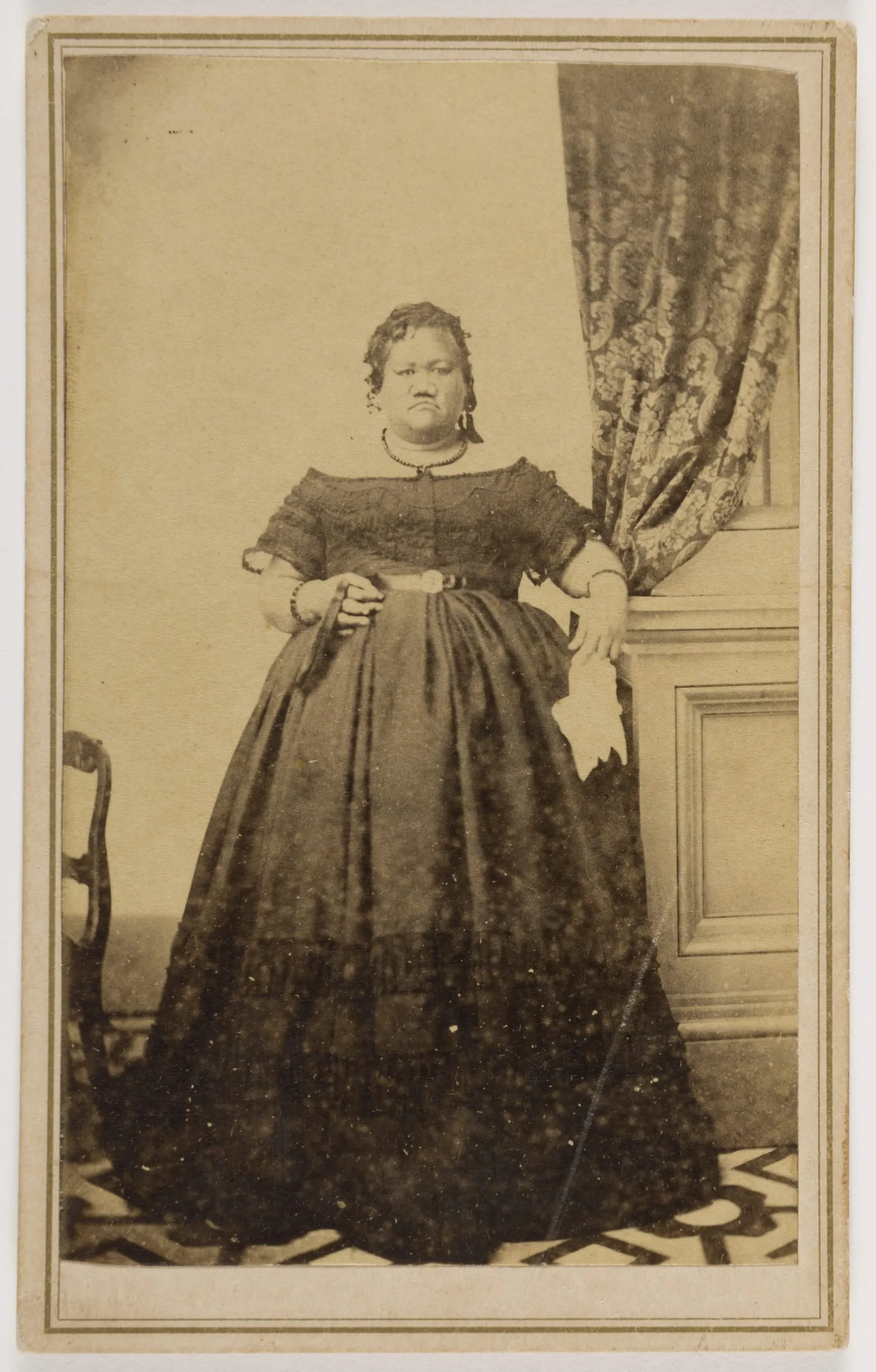 Ke'elikolani was born in Pohukaina, Oahu in 1826. Her mother, Chiefess Pauhi, married her third husband, Mataio Kekuanao'a, only three months before she died while giving birth to Princess Ruth. Both Kekuanao'a and the Chiefess’s second husband, High Chief Kahalai?a Luanu'u, claimed Ke'elikolani as a daughter. She was publicly recognized as keiki po‘olua, a “two heads” child, or someone who would inherit the mana (spiritual energy) of both fathers. This early controversy surrounding her paternity presented enduring challenges as she navigated the U.S. legal system to secure a vast land inheritance. When she was sixteen, the princess married Leleiohoku with whom she had two children. After Leleiohoku’s death, Ke'elikolani married Isaac Young Davis, grandson of the haole (a white person) advisor to Kamehameha I. Together they had a son, whom she gave to her cousin Bernice Pauahi Bishop to raise in the Hawaiian tradition of hanai.