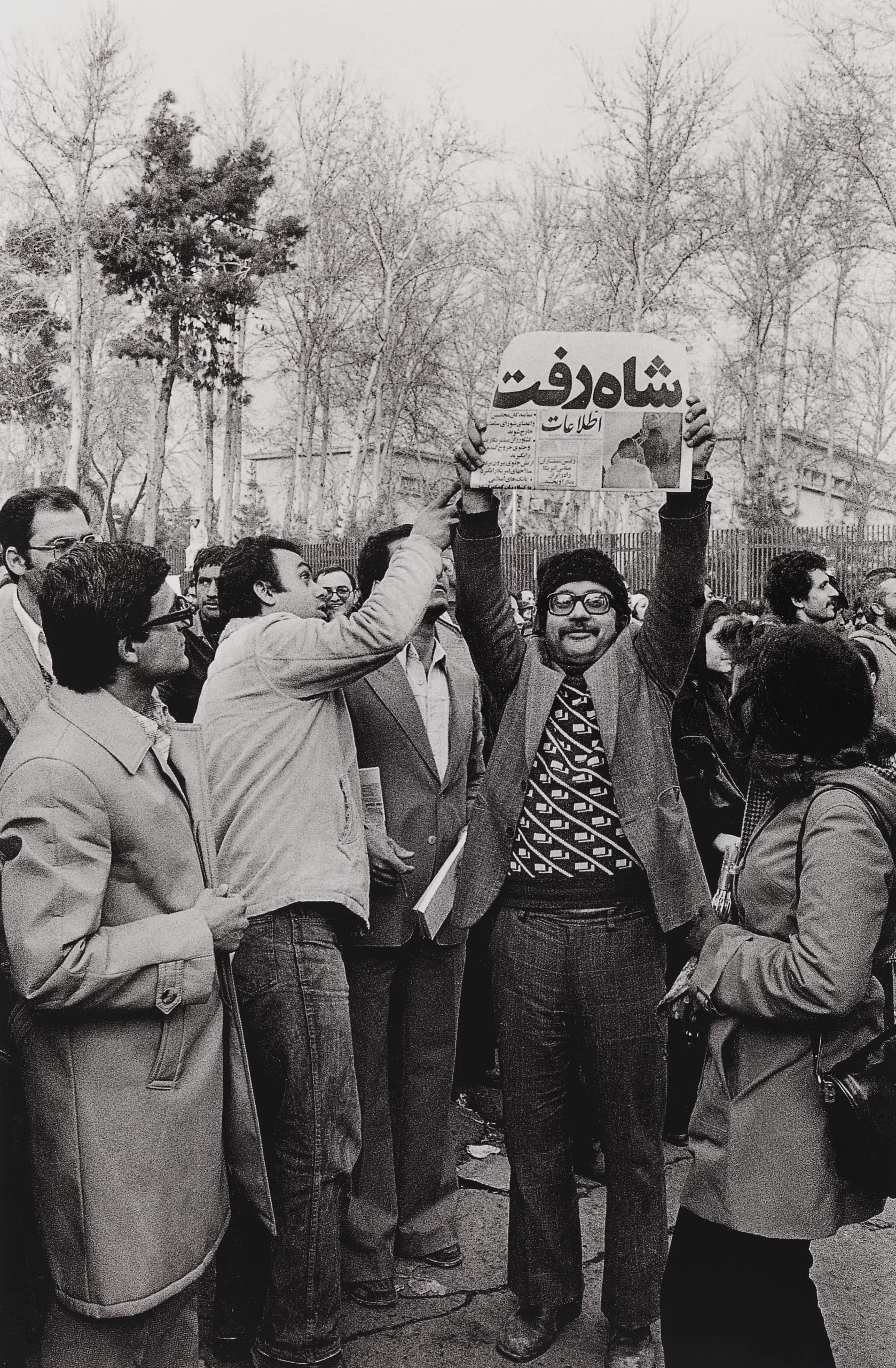 Maryam Zandi’s cool eye for choosing her subjects is particularly evident in this image of a man ecstatically holding a newspaper with the headline, "The Shah Left." There is something both charming and sad in this scene of unrestrained happiness, for, within a few months, many of the newspapers proclaiming the glad tidings of the shah’s departure would be shuttered by the new leadership.