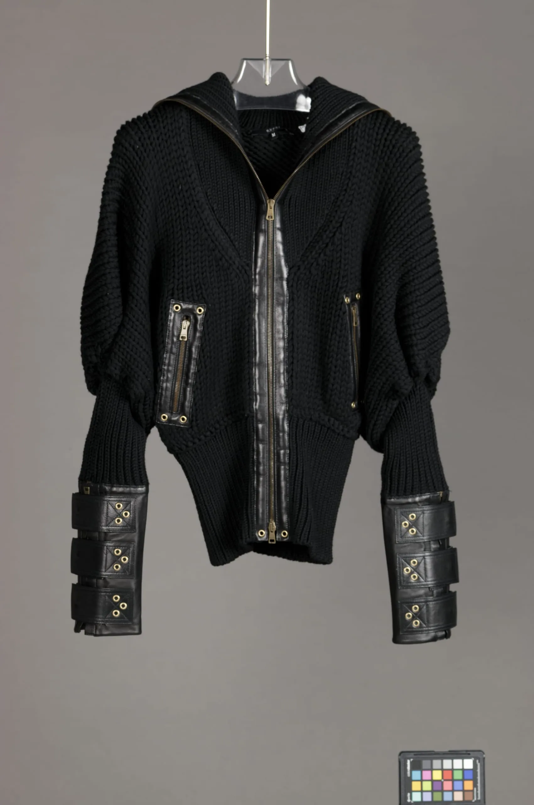 - Wool knit, leather, metal