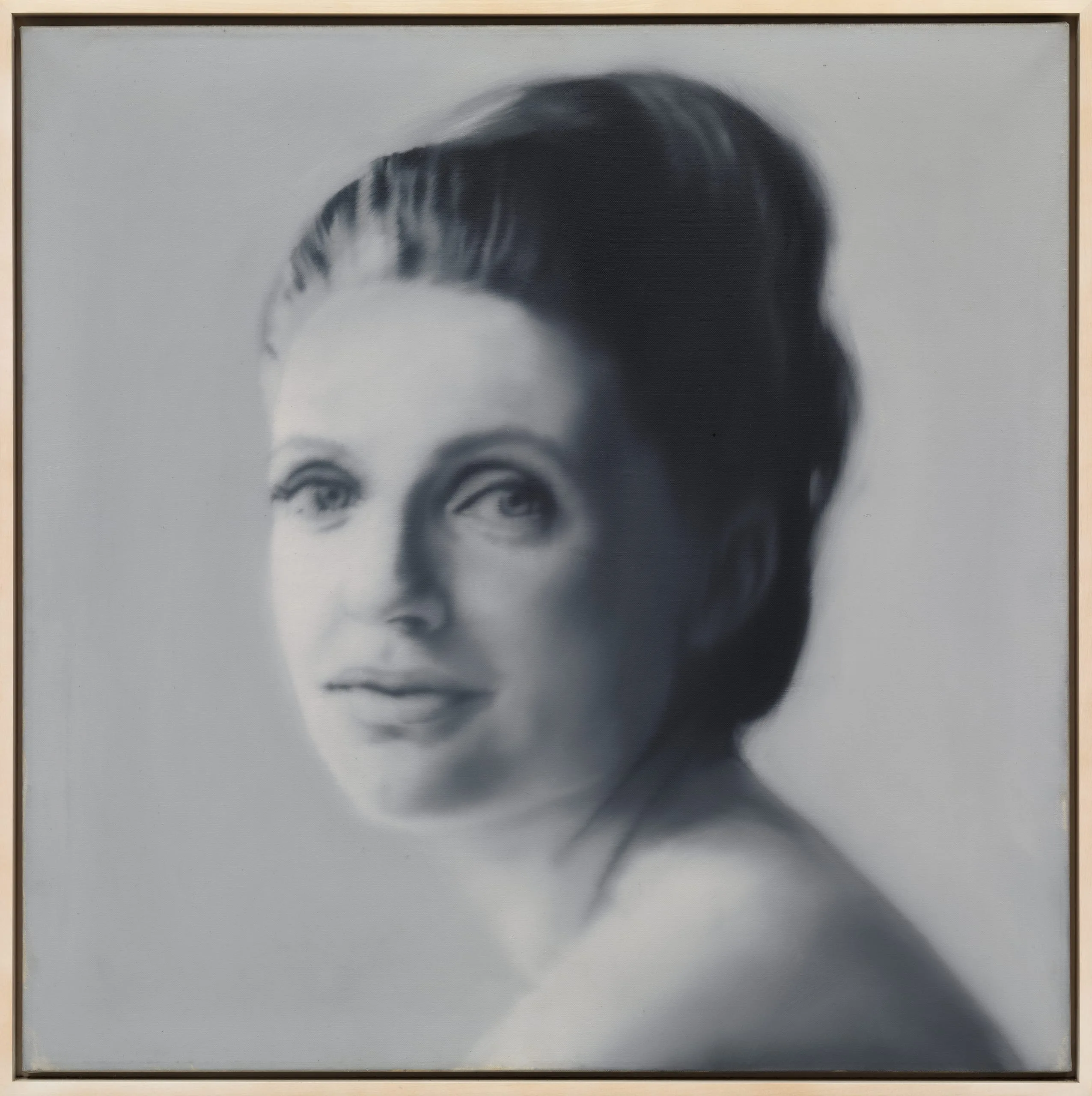 Like many of Gerhard Richter’s paintings, this one began with a photograph: the artist projected a portrait he had taken of a friend onto canvas, then replicated it in oil. The work simulates the realism of the original photograph while blurring the subject, as is characteristic of many of his early works. Portrait Wachenfeld (104–3) is one of the acclaimed Grey Paintings Richter made in the 1960s during a period of interest in the color’s neutrality. The work was executed in Düsseldorf, the artist’s adopted home after he had fled to West Berlin from East Germany in 1961, just prior to the erection of the Berlin Wall.