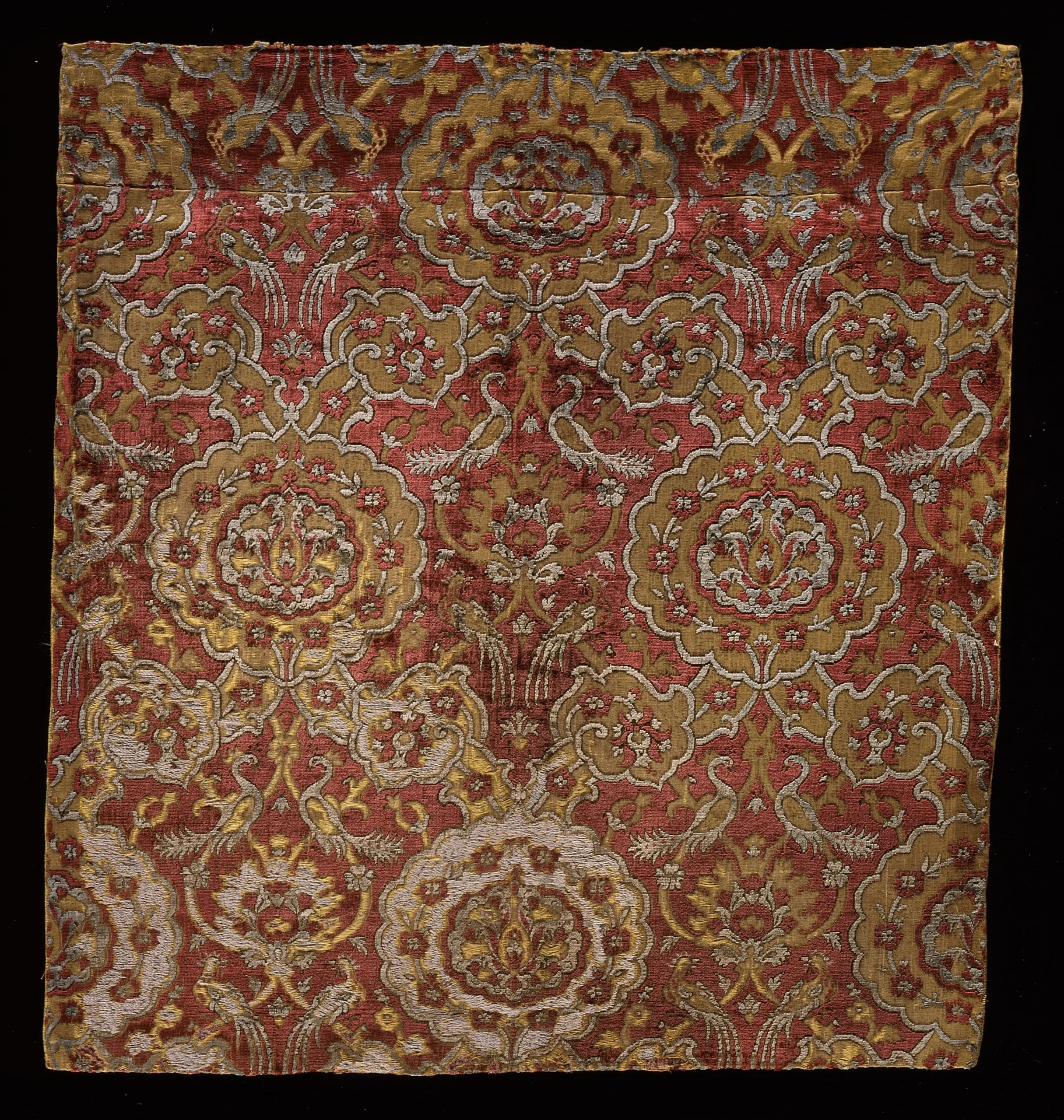 - Cut and voided silk velvet, metallic thread supplementary weft