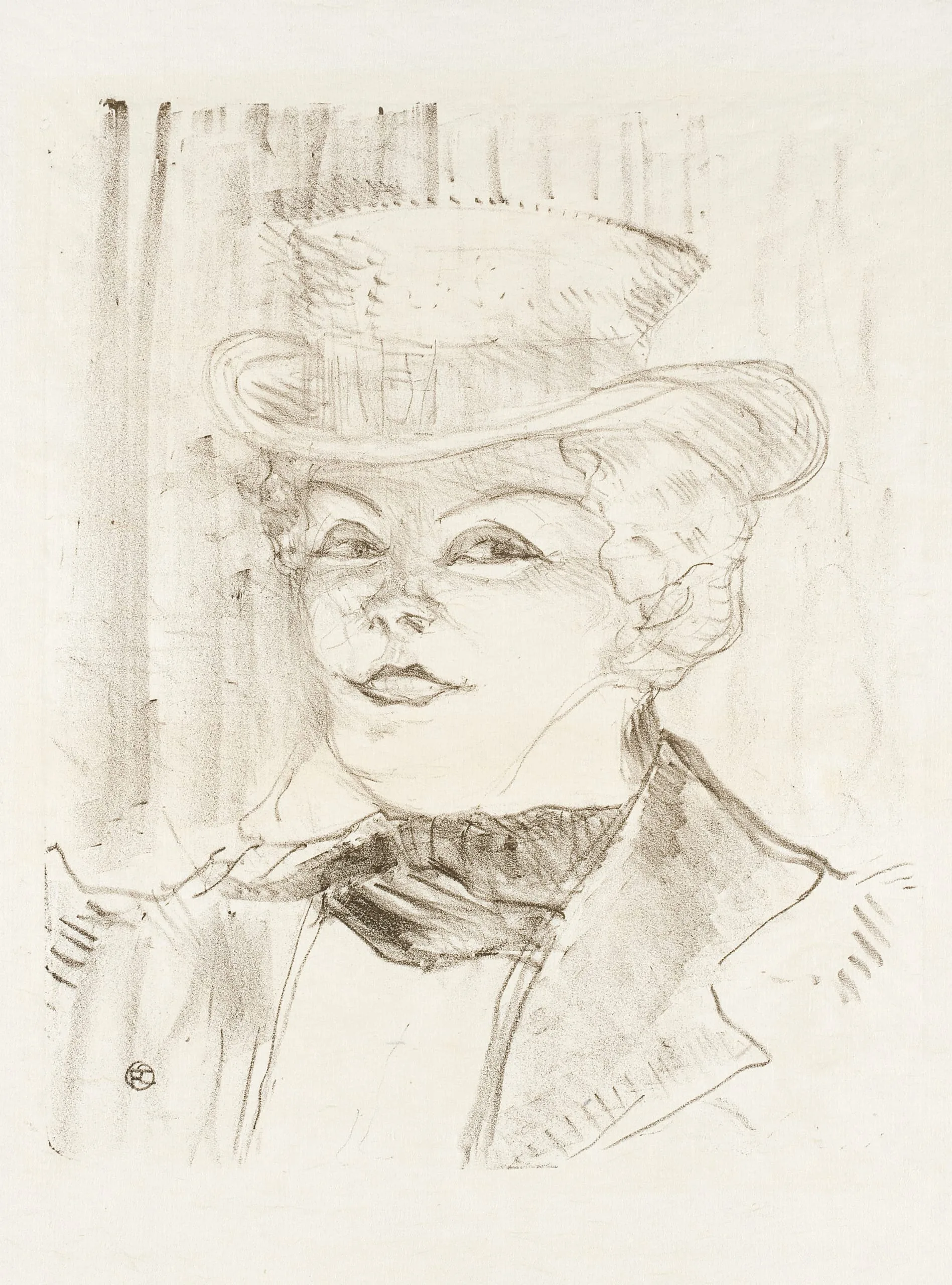 - Lithograph, printed in dark olive-green, on laid japan paper