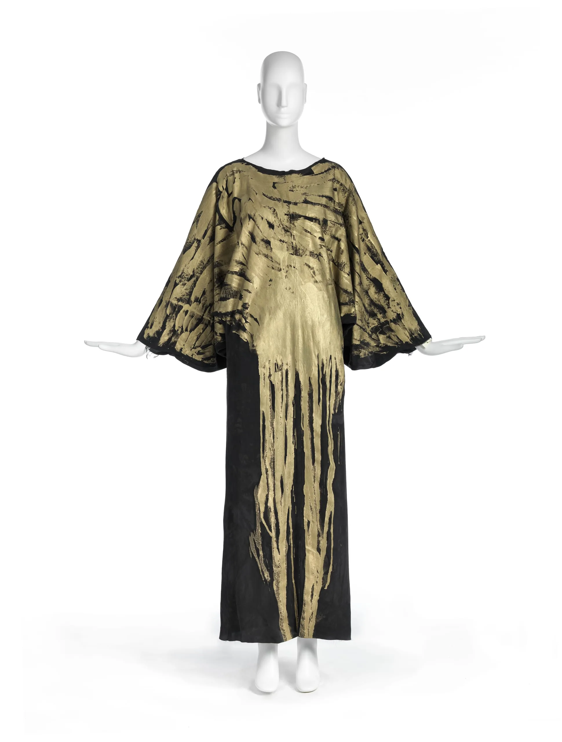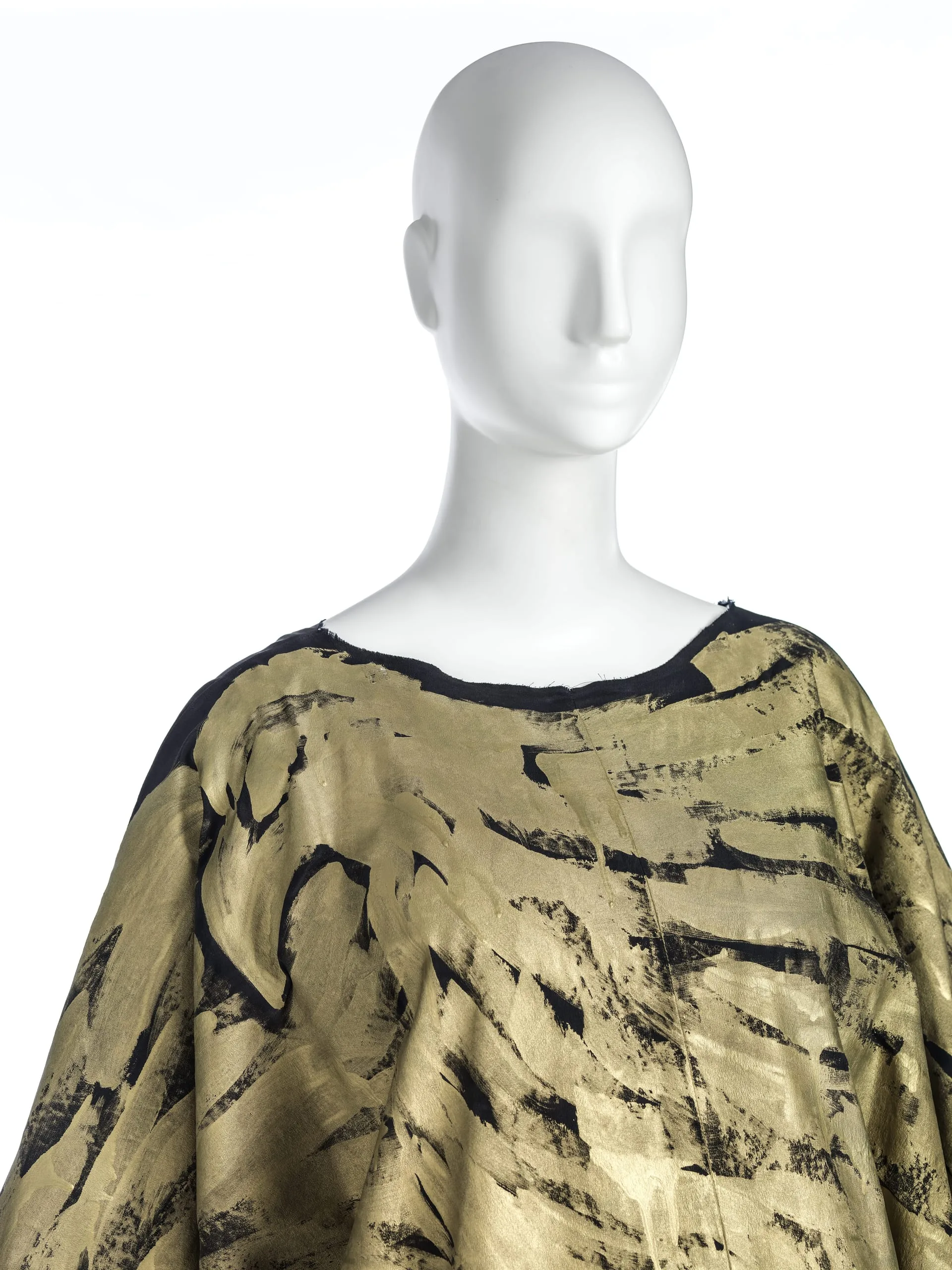 - Silk plain weave (crepe), hand-painted metallic pigment