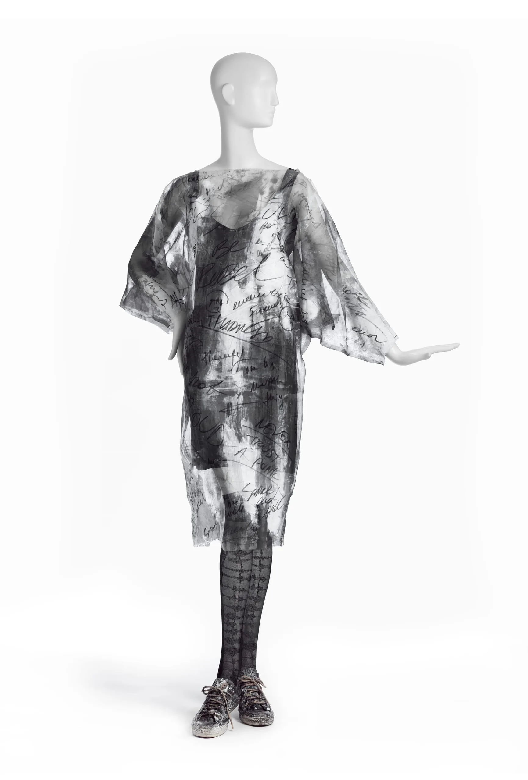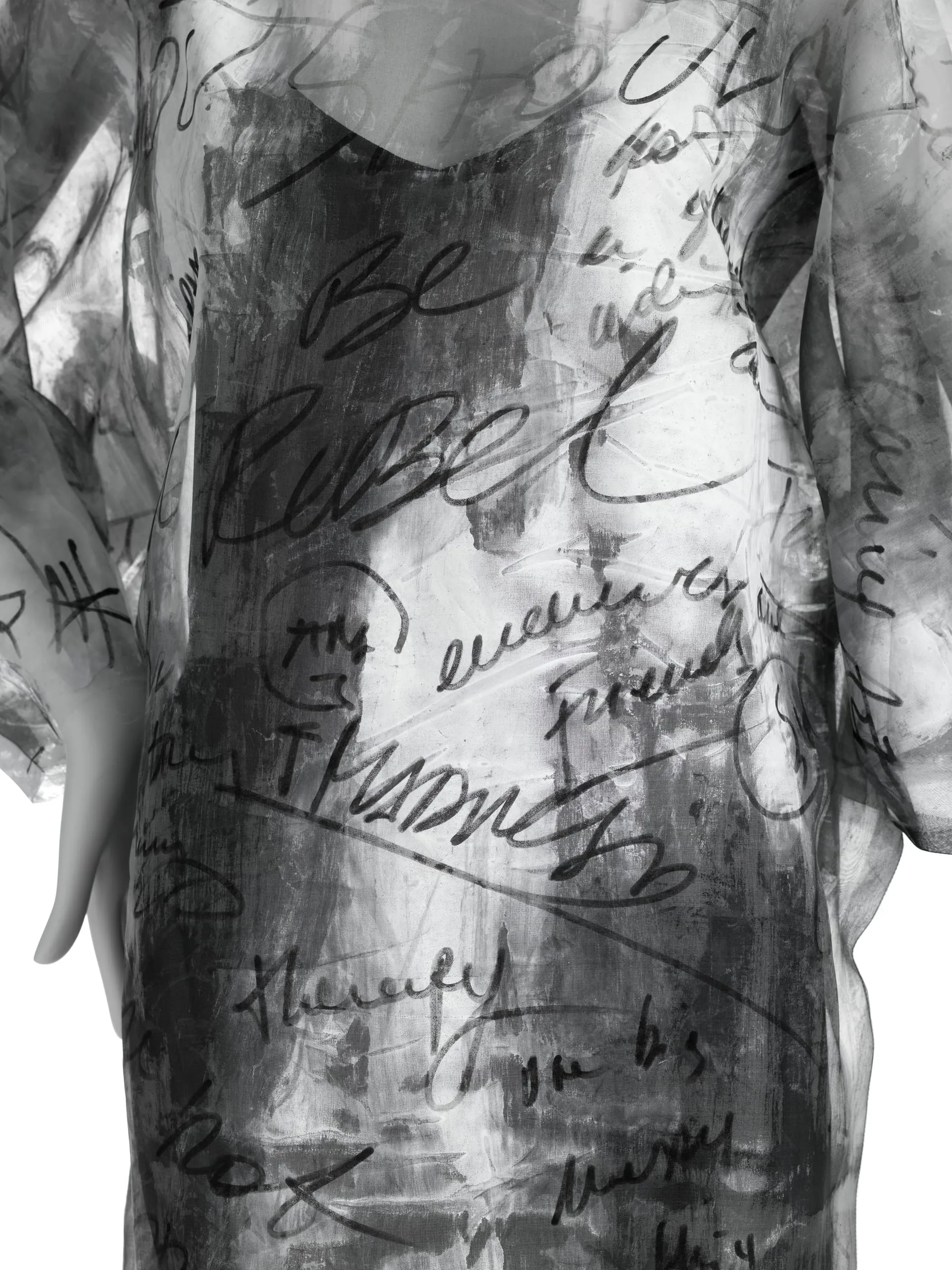 - Dress: Silk plain weave (organza), hand-painted ink